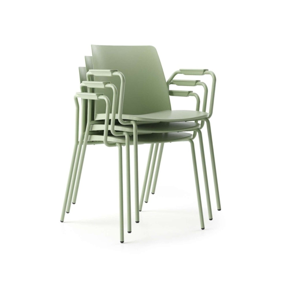 Une chaise empilable avec accoudoirs pensée pour les espaces modernes