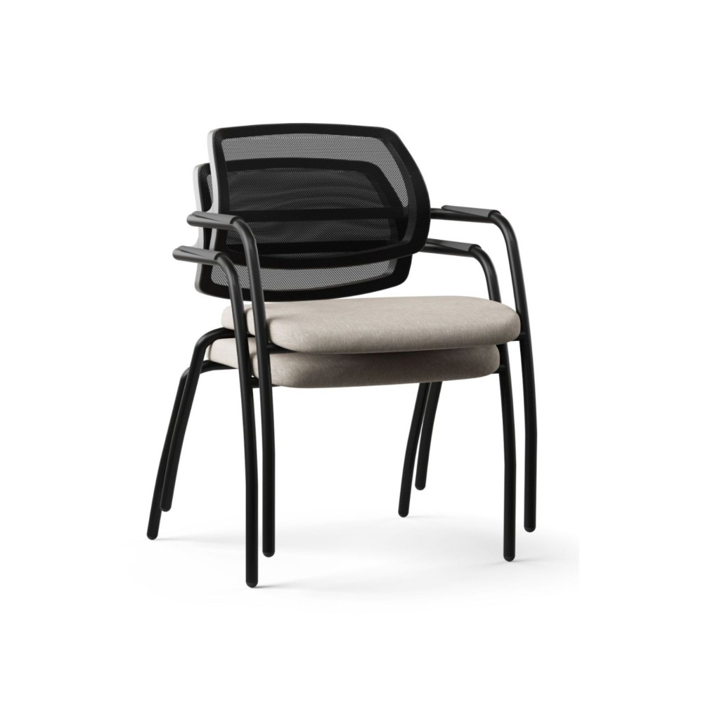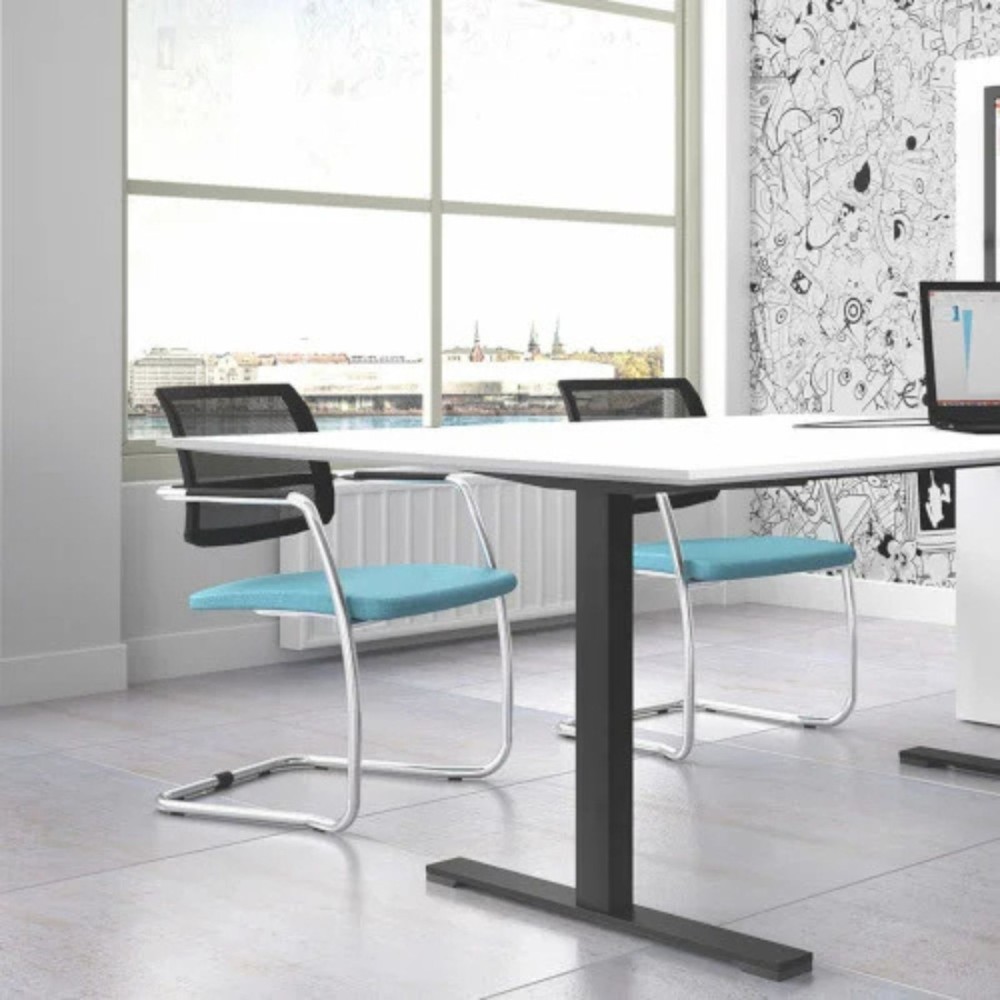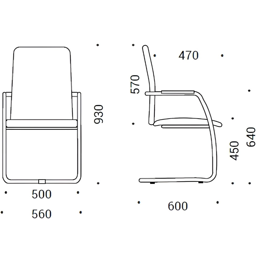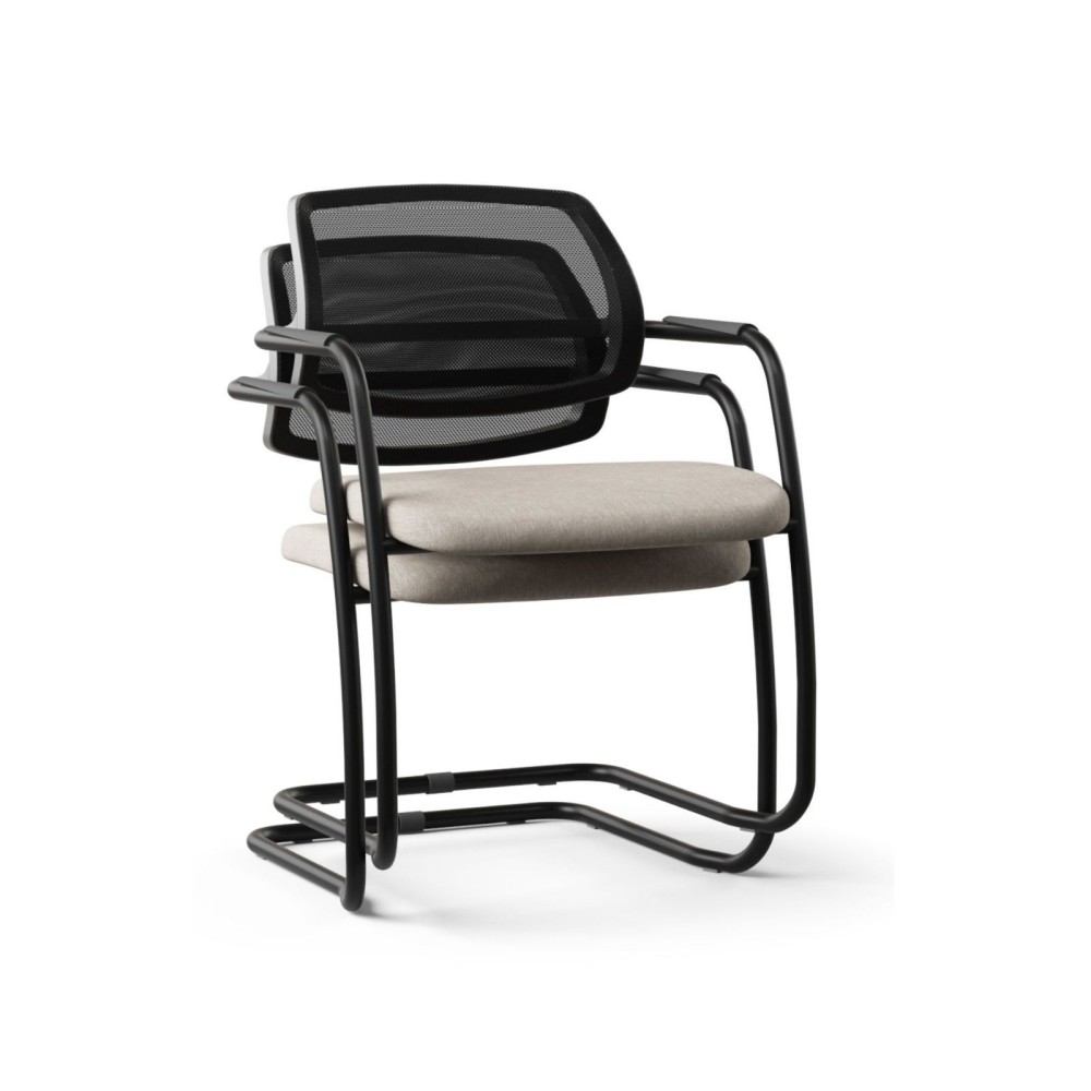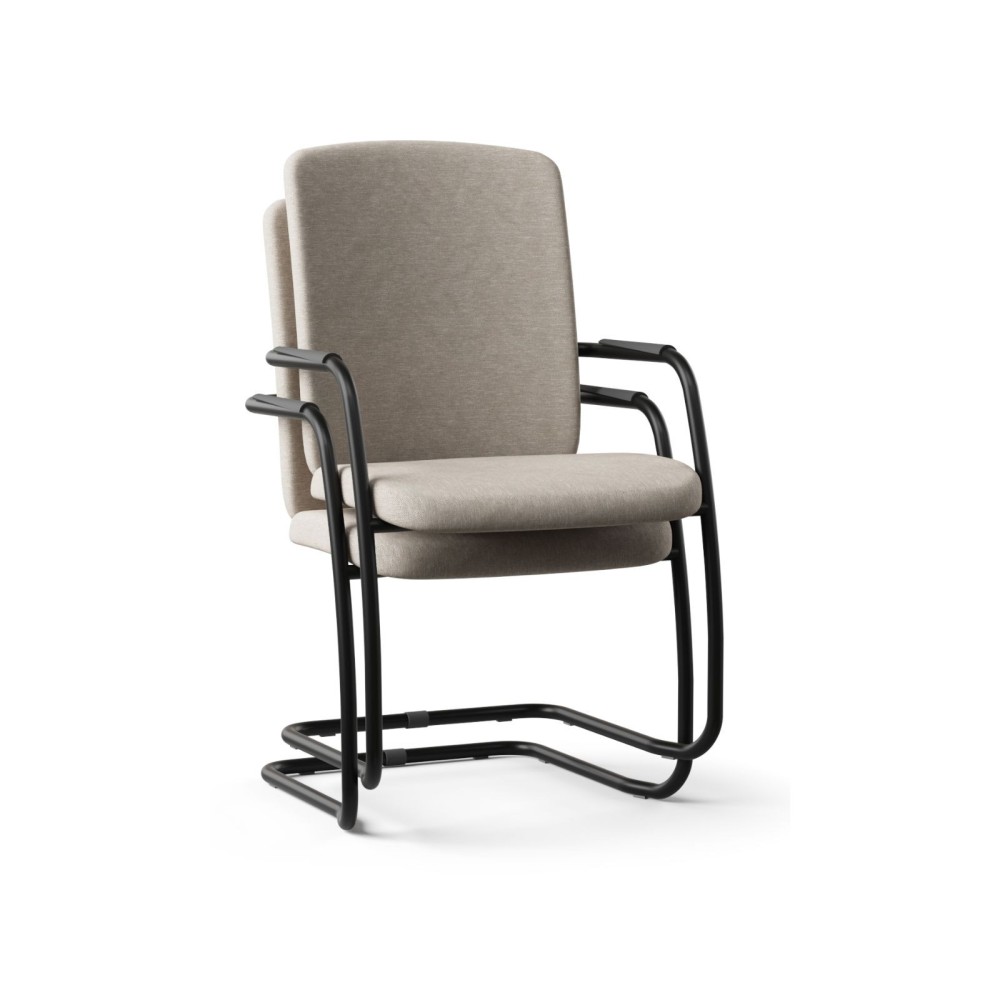 - Piètement luge (cantilever) pour un confort renforcé, disponible avec un dossier haut
