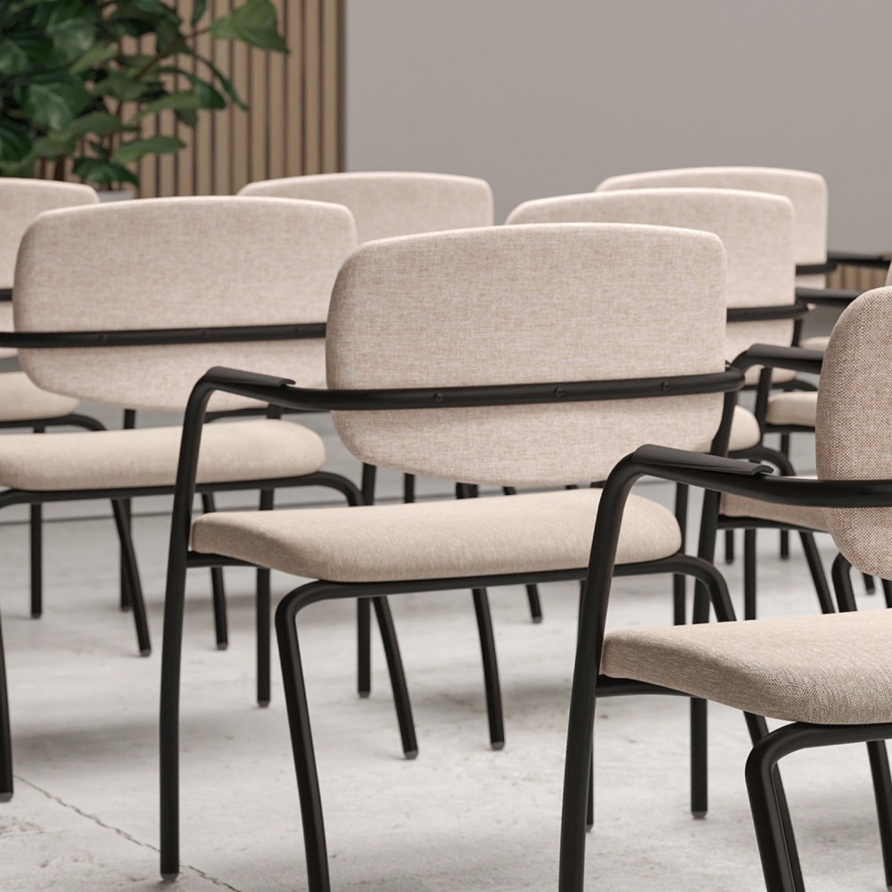 Empilable jusqu’à 6 chaises, le modèle GAMA est une solution peu encombrante et idéale pour les salles modulables ou les événements.