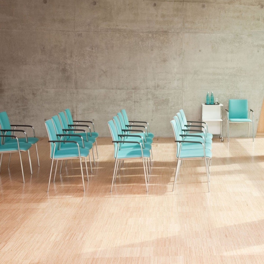 La chaise Moon avec accoudoirs est parfaite pour aménager une salle de réunion, un espace d’attente ou un coin détente. Son design épuré et sa silhouette légère apportent une touche de modernité aux environnements professionnels. Son assise tapissée et son piètement métallique chromé ou peint assurent confort, robustesse et style.