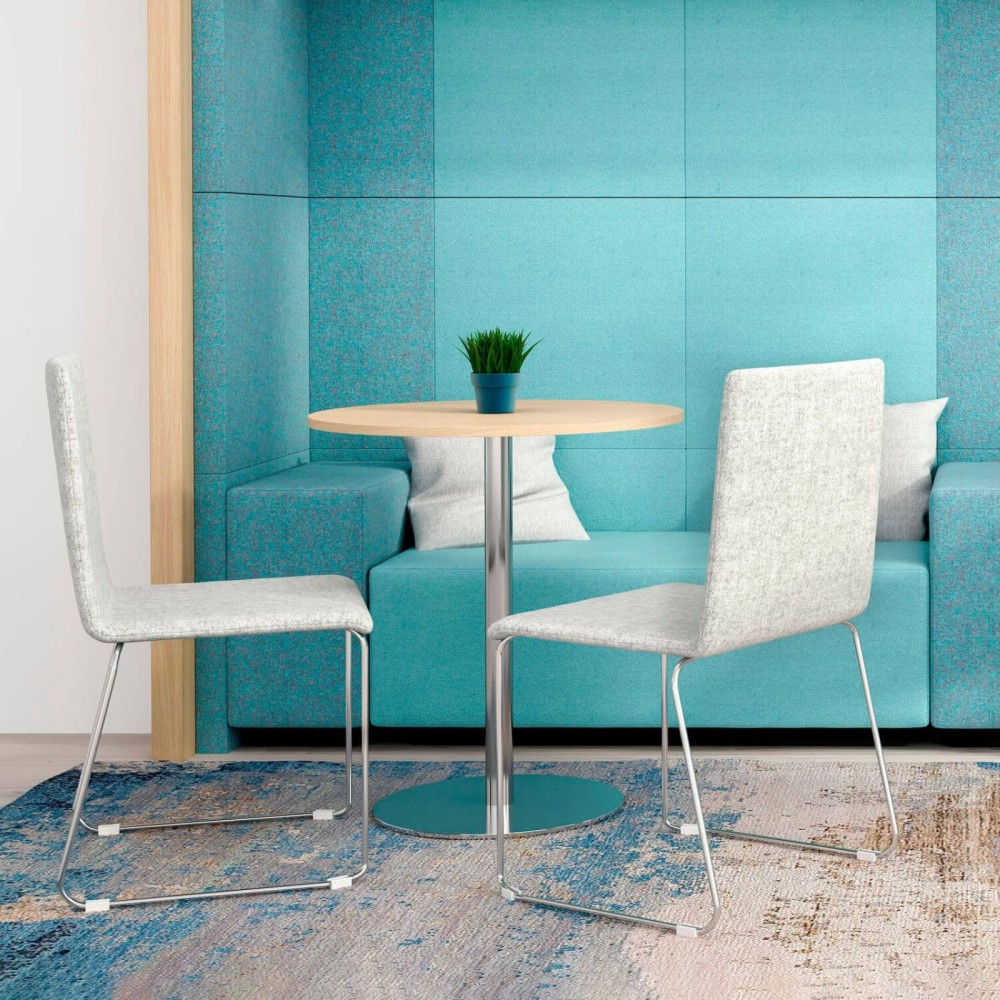 Son dossier haut et légèrement galbé offre un excellent soutien du dos, idéal pour les réunions prolongées ou les zones d’attente. L’assise rembourrée est revêtue de tissu doux et résistant, sélectionné pour une utilisation intensive en entreprise.