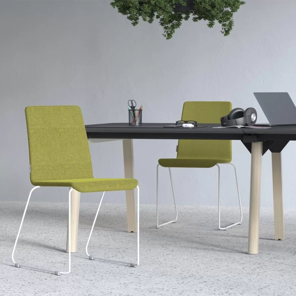 La chaise Moon avec piètement traîneau est la solution idéale pour un agencement à la fois moderne, fonctionnel et confortable.