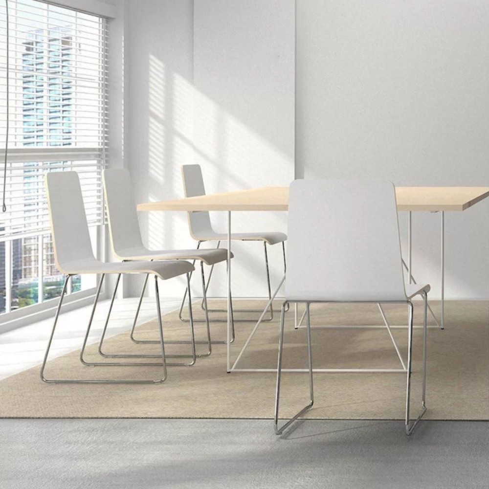 La coque en contreplaqué cintré offre un excellent maintien du dos et une assise confortable, même pour de longues périodes. Son design épuré et ses lignes douces s’intègrent parfaitement dans les environnements de bureau contemporains. Elle convient autant aux espaces d’accueil qu’aux zones d’échange informelles.