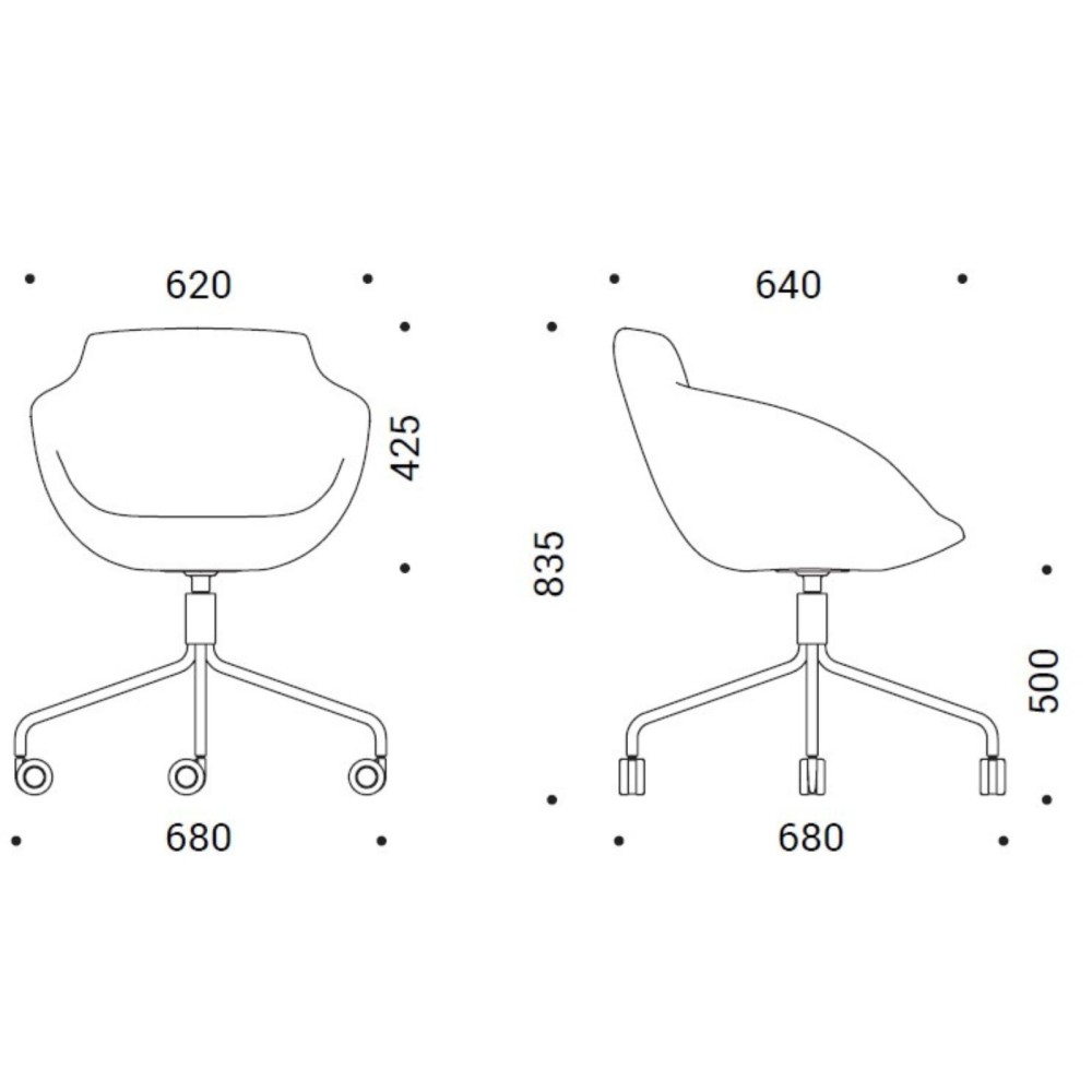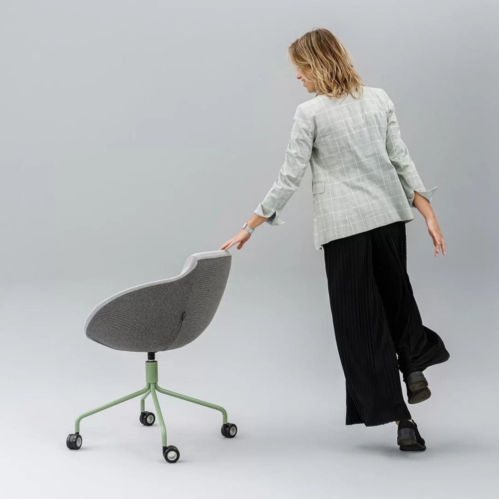 Avec sa coque enveloppante et son piètement mobile, la chaise Tula sur roulettes combine fonctionnalité et esthétique pour des environnements dynamiques et collaboratifs.