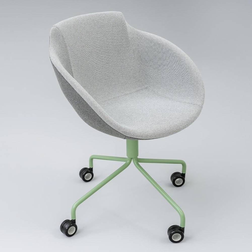 La chaise Tula sur roulettes est conçue pour offrir un confort optimal avec une grande liberté de mouvement. Idéale pour les salles de réunion, les espaces de coworking ou comme siège visiteur dynamique, elle allie design fluide, coque enveloppante et mobilité grâce à son piètement léger à roulettes. Elle permet de créer des environnements flexibles, confortables et stylés.