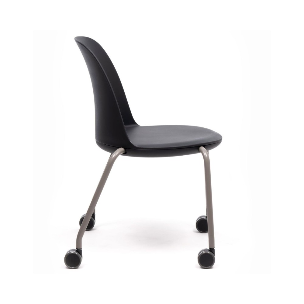 Fabriquée à partir de matières plastiques recyclées, la coque de la chaise Haali témoigne d’un engagement fort pour le développement durable. Sa structure monobloc offre un excellent maintien, tandis que ses roulettes silencieuses avec frein automatique assurent une parfaite mobilité sur les sols souples.