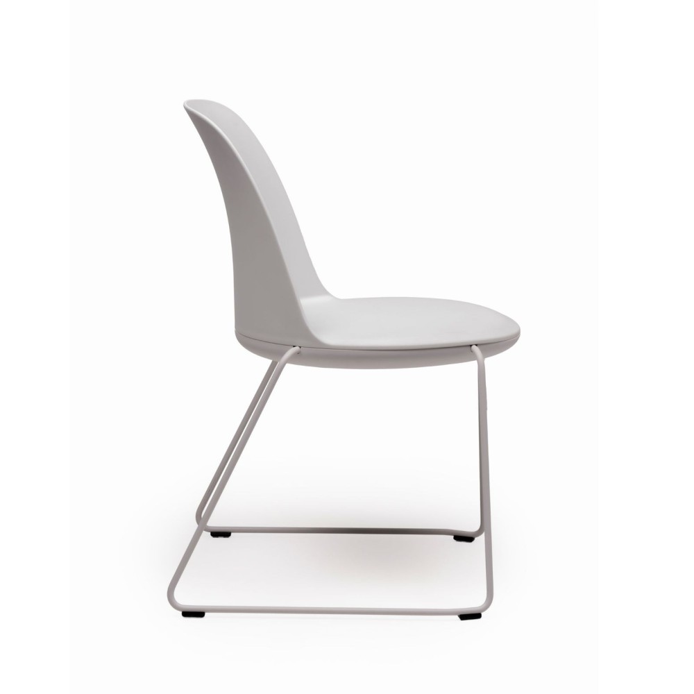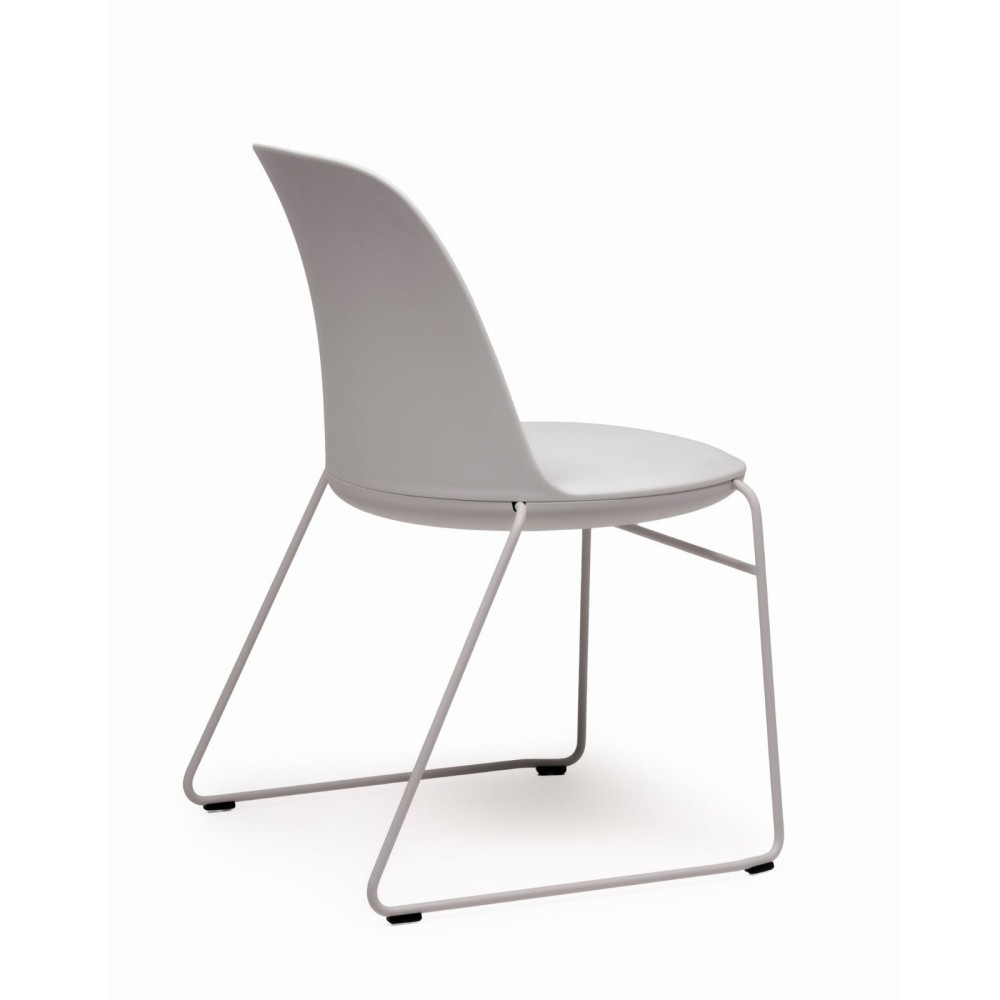 Fabriquée à partir de plastique injecté renforcé de fibre de verre, la coque offre une assise solide, souple et durable. Le piétement traîneau assure une excellente stabilité tout en facilitant le déplacement sans rayer les sols grâce à ses patins adaptés. Un panier de rangement sous le siège peut être ajouté afin de faciliter ton organisation au travail.