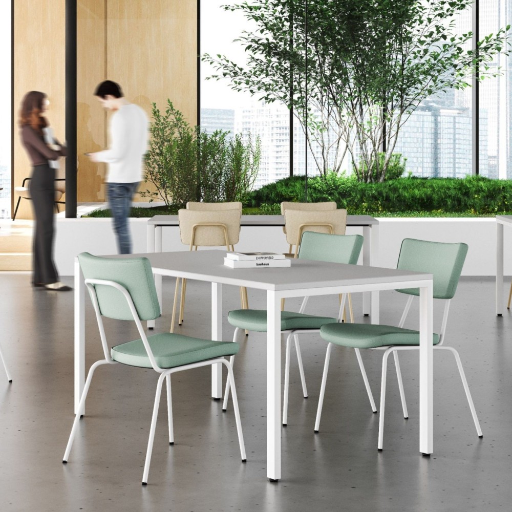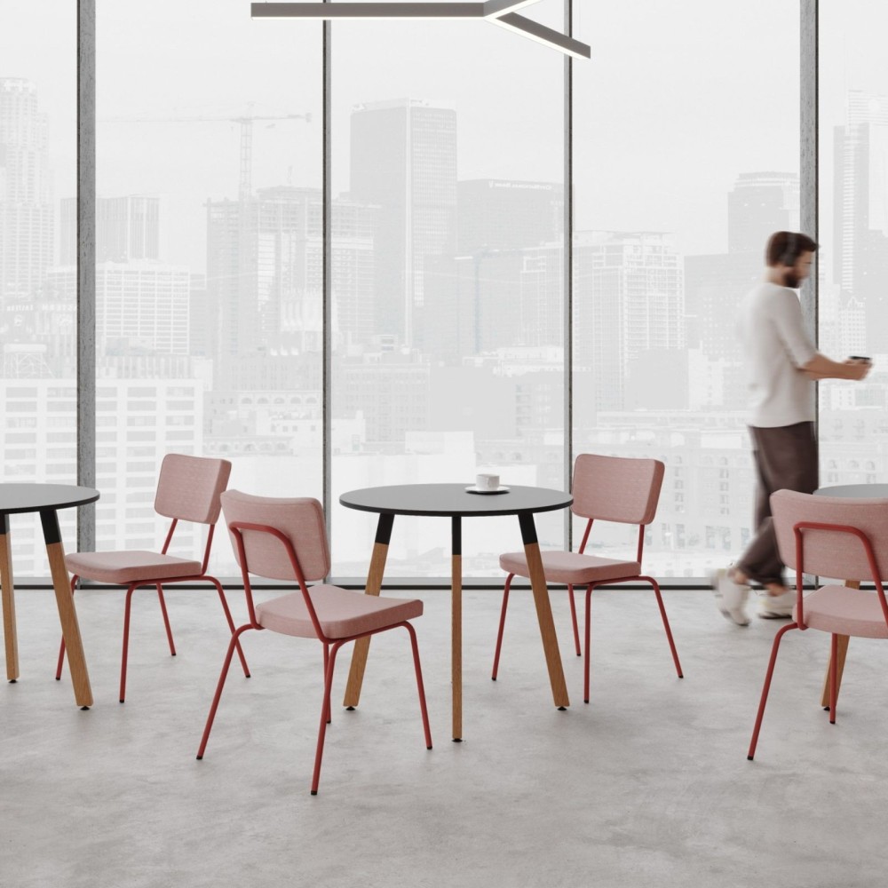 Le dossier légèrement incurvé épouse naturellement la forme du dos, tandis que le large coussin d’assise assure un confort optimal, même lors de longues sessions de travail ou de réunion. L’assise peut être habillée de deux teintes différentes, pour une personnalisation harmonieuse de ton espace.