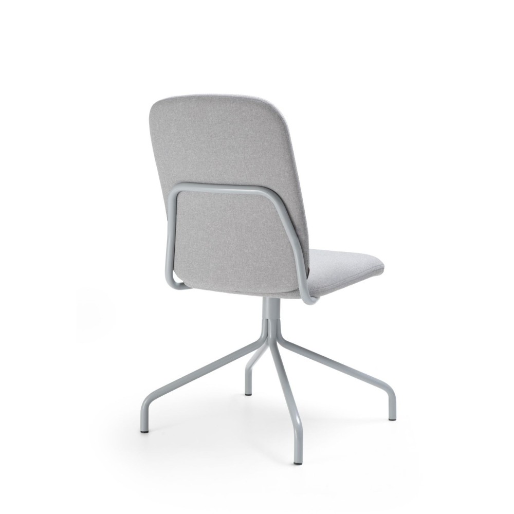 La chaise repose sur un piétement métallique à quatre branches qui assure une excellente stabilité. Sa forme légère et équilibrée facilite l’intégration dans une salle de réunion ou dans un open space collaboratif où le mobilier doit rester visuel et fonctionnel. Cette base solide est conçue pour résister aux usages intenses des entreprises suisses, tout en apportant une esthétique contemporaine.