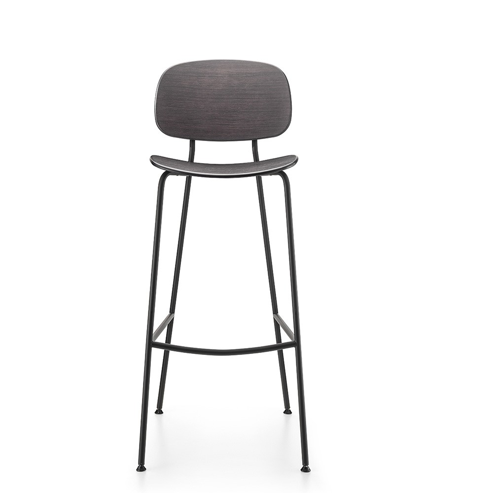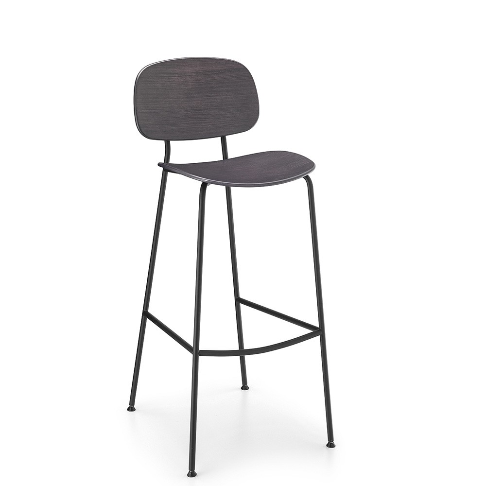 Tabouret de bar en bois et acier noir - chaleureux, accueillant pour restauration, salle de pause, cafétaria Tondina