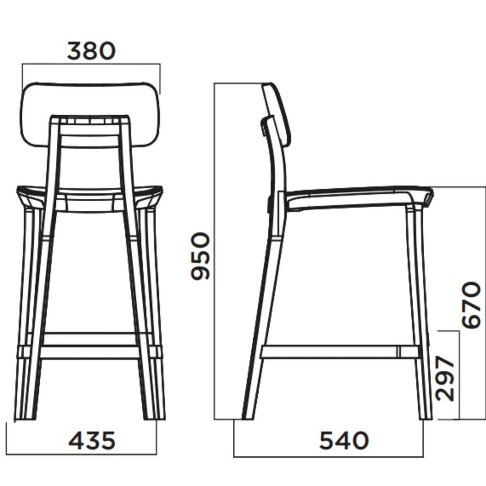 Dimensions Tabouret de cuisine design bois - Porta Venezia