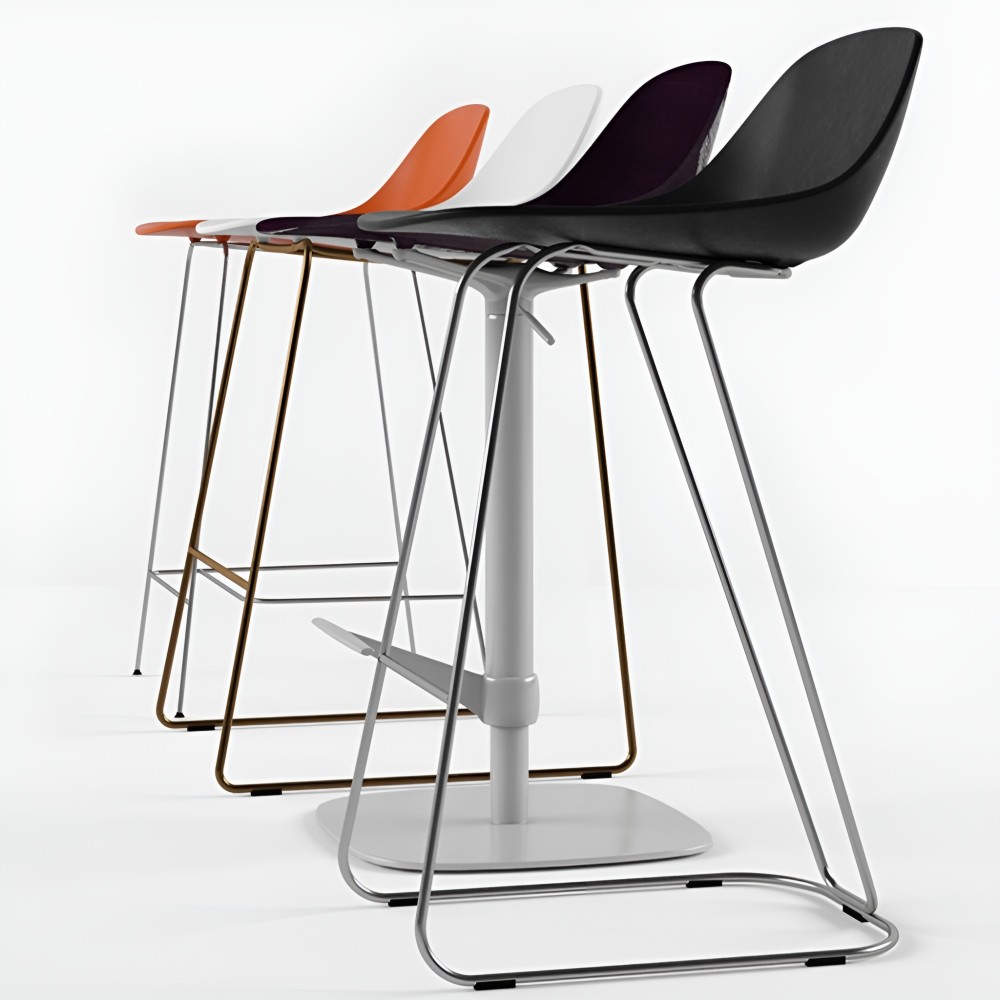 Le Pure Loop Mini Dandy – version bar intérieur – séduit par son design équilibré, à la fois minimaliste et graphique. Sa coque en plastique moulé épouse naturellement la forme du corps et offre une assise confortable. Sa structure en traîneau Dandy, fine et élégante, renforce l'identité visuelle du tabouret tout en assurant une excellente stabilité.