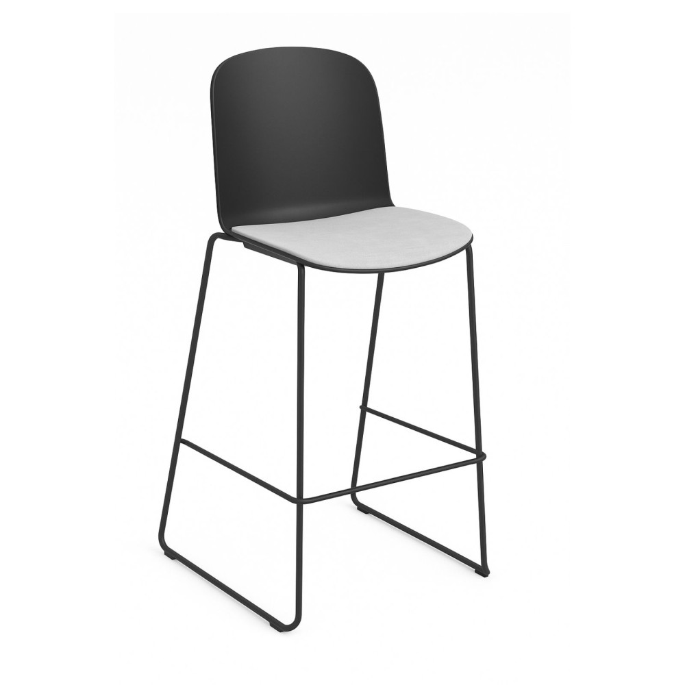 L’assise tapissée en tissu est fixe, avec un rembourrage ferme. Elle assure un bon maintien, même en usage ponctuel régulier dans une cuisine d’entreprise ou une salle de pause.