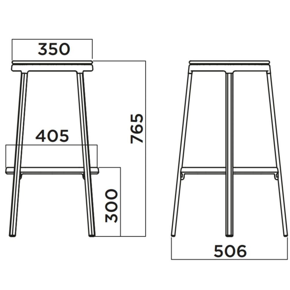 Dimensions techniques du tabouret ROUND&ROUND avec assise plastique, hauteur 765 mm