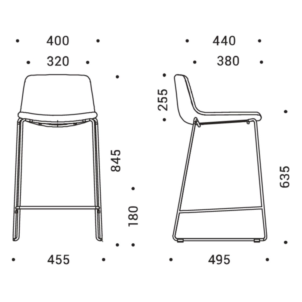 Le piètement filaire en acier Ø12 mm apporte une touche graphique tout en garantissant stabilité et légèreté visuelle. Revêtu d’une peinture époxy noire ou blanche, il s’intègre facilement dans tous types d’intérieurs. Les patins antidérapants (avec ou sans feutre) assurent une bonne protection des sols et une assise stable.