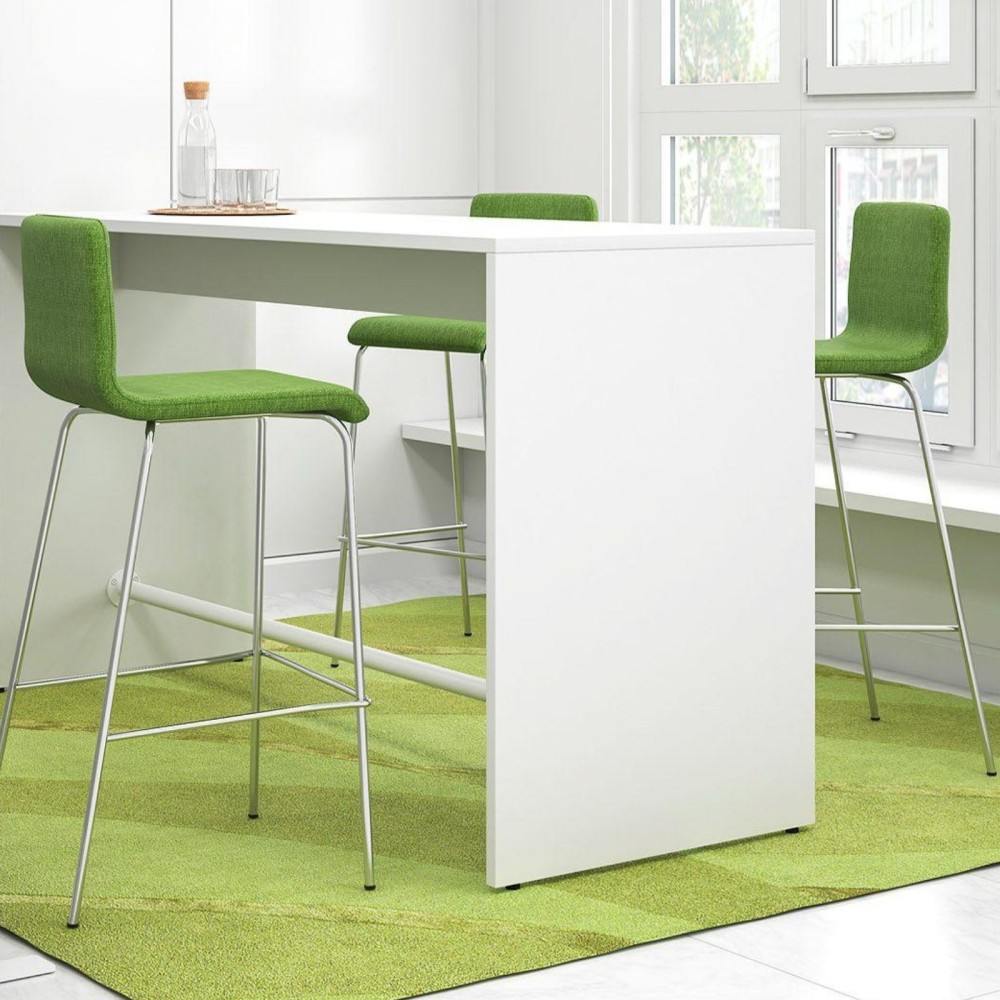 Avec une hauteur d’assise de 755 mm, ce tabouret est parfaitement adapté aux tables hautes et bars d’environ 110 cm. Le repose-pieds intégré assure une position confortable pour des échanges détendus ou des pauses prolongées.