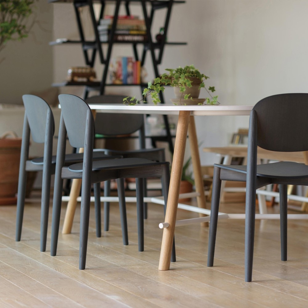 Matériaux : cadre en bois massif (frêne ou hêtre), assise et dossier en contreplaqué de bois