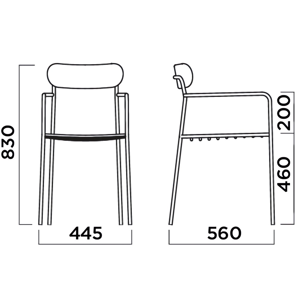 Chaise d’extérieur Uti en acier avec accoudoirs