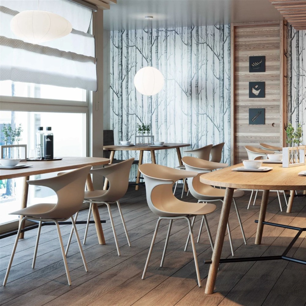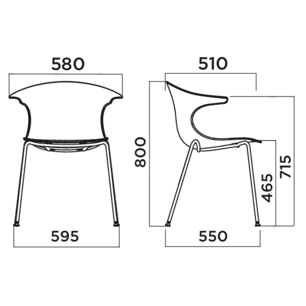 La version outdoor de la chaise Loop Mono conserve son design fluide et ergonomique, tout en étant conçue pour résister aux conditions extérieures. Sa coque en plastique recyclé et son piètement 4 pieds en acier peint pour l’extérieur en font une solution idéale pour les terrasses de cafés, les espaces de restauration extérieurs ou les patios d'entreprise.