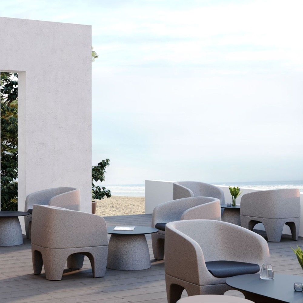 Résistant au soleil et à l’humidité, le fauteuil Gummy Bear trouve facilement sa place sur une terrasse, un balcon ou dans le jardin d’un restaurant. Il s’intègre aussi parfaitement dans un hall d’hôtel, une salle d’attente ou un espace détente.