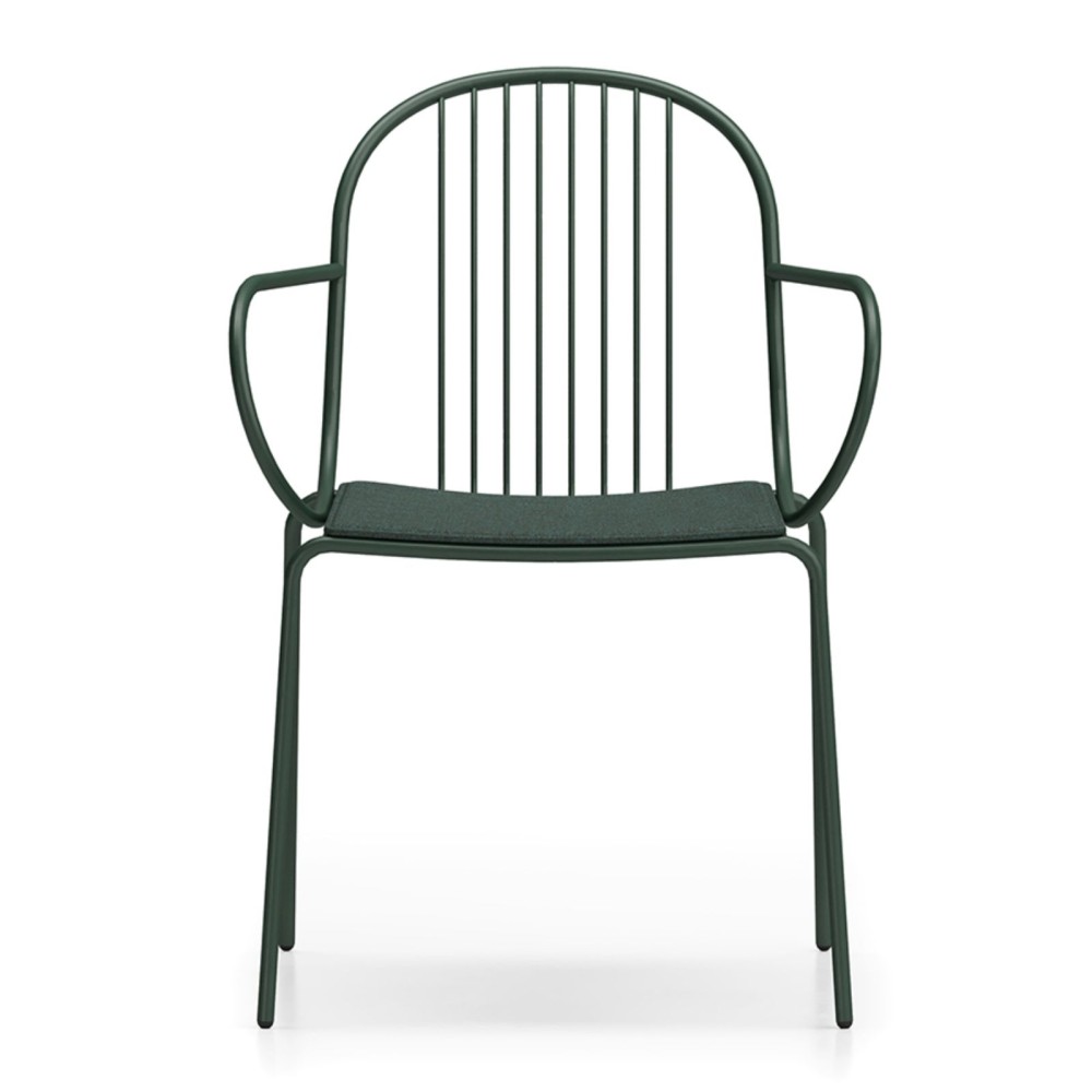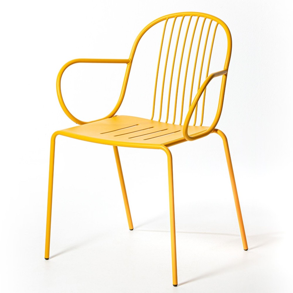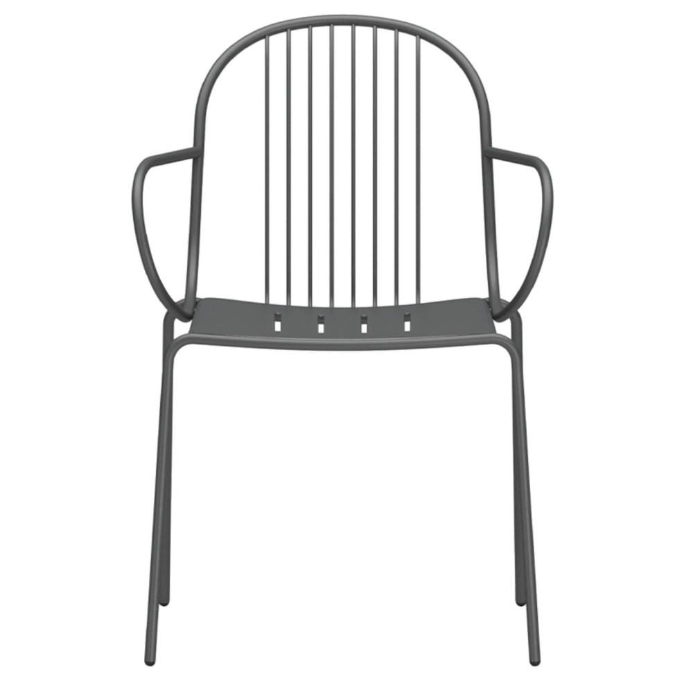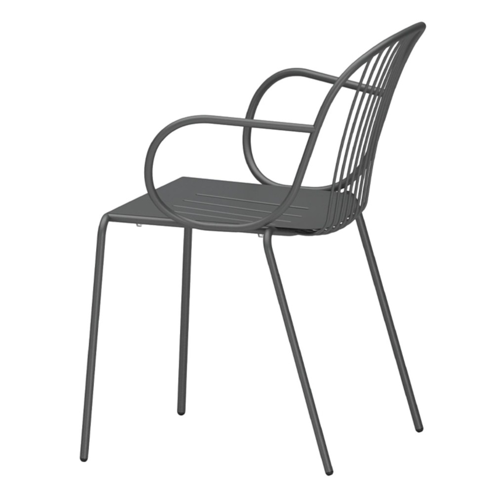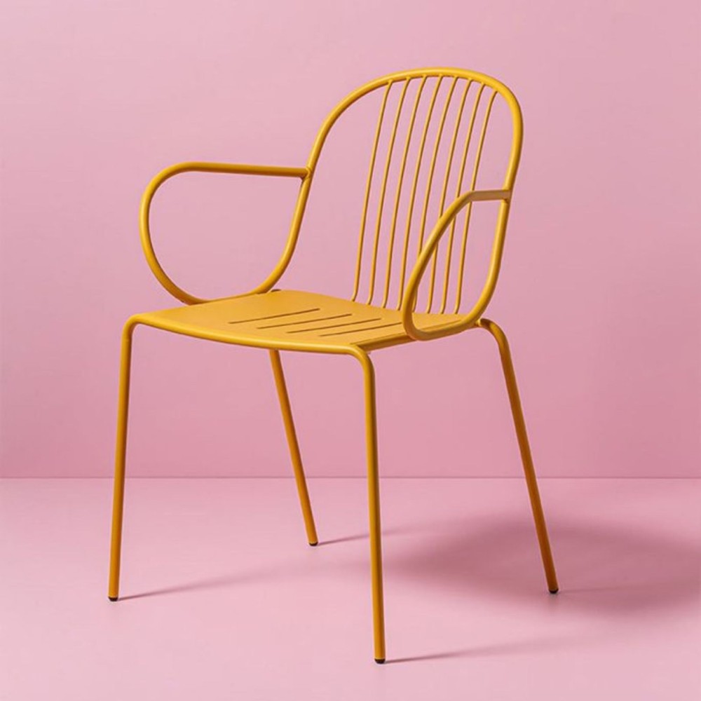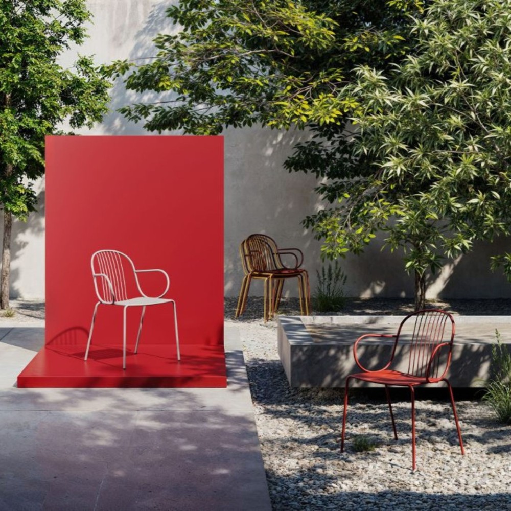 La chaise Diane avec accoudoirs incarne l’élégance du mobilier français d’après-guerre, revisitée dans une version moderne et confortable. Sa structure en acier aux lignes fines joue avec les pleins et les vides, tandis que ses accoudoirs arrondis offrent un soutien supplémentaire. Une assise idéale aussi bien pour l’extérieur que pour l’intérieur.