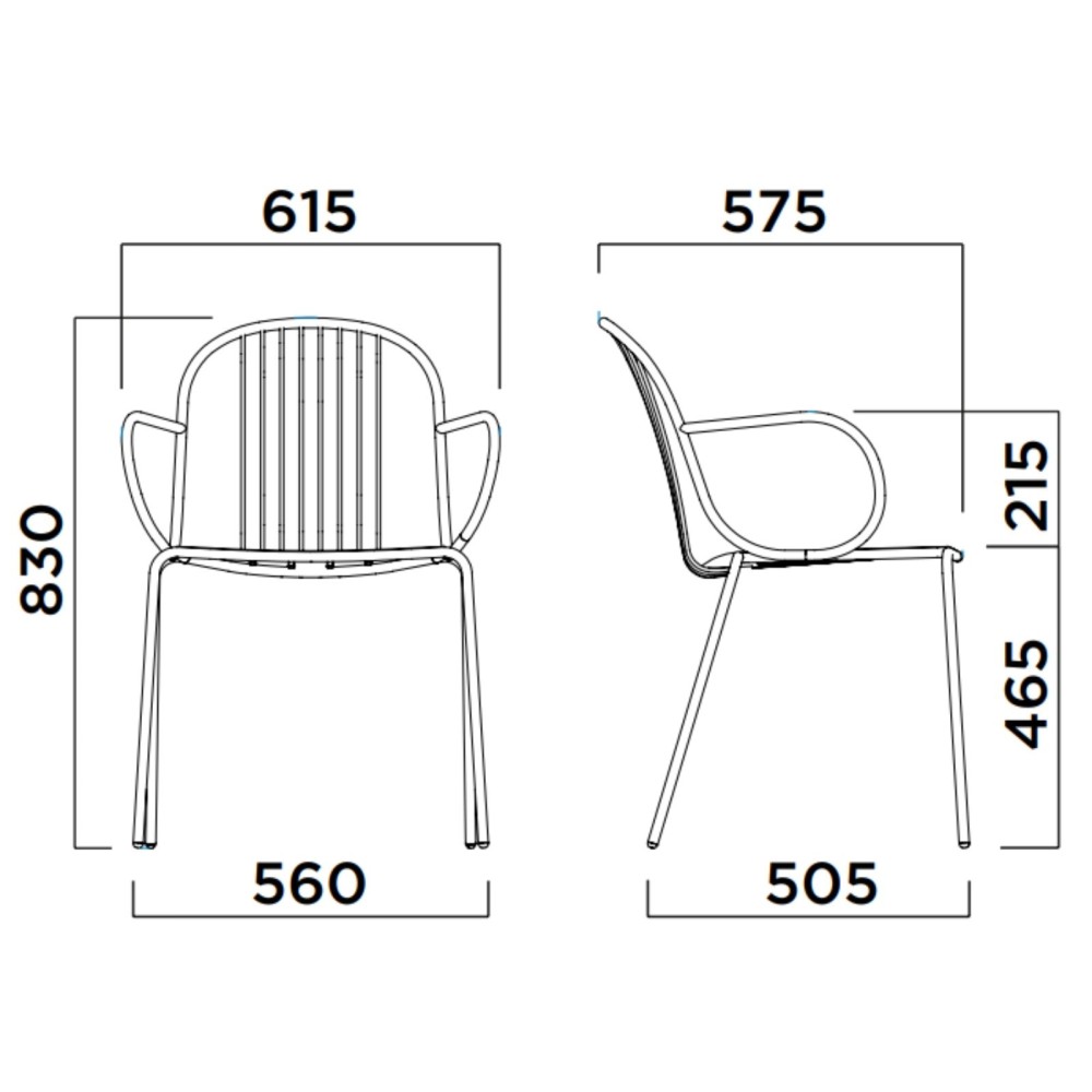 Dotée d’une assise généreuse et d’un dossier ergonomique, la chaise Diane assure un confort durable. Ses accoudoirs intégrés ajoutent un soutien appréciable pour des repas, réunions ou moments de détente prolongés. Empilable, elle se range facilement, ce qui la rend parfaite pour les environnements professionnels (cafés, restaurants, hôtels) comme résidentiels.