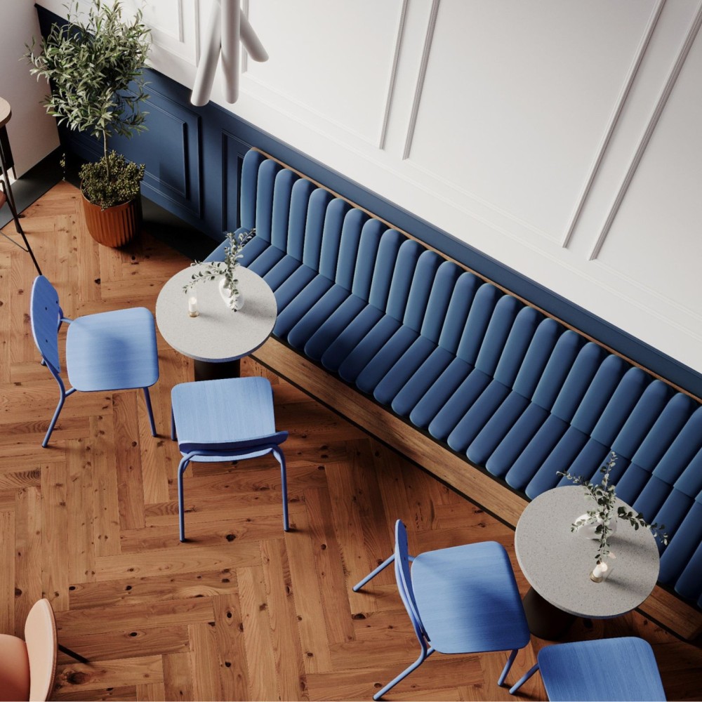 Grâce à son dossier en placage chêne naturel et à son assise douce, la Hens apporte une touche conviviale dans les salles de restauration ou zones de détente. Sa structure en métal peint garantit une excellente stabilité ainsi qu’un entretien facile, idéal pour les environnements à forte rotation.