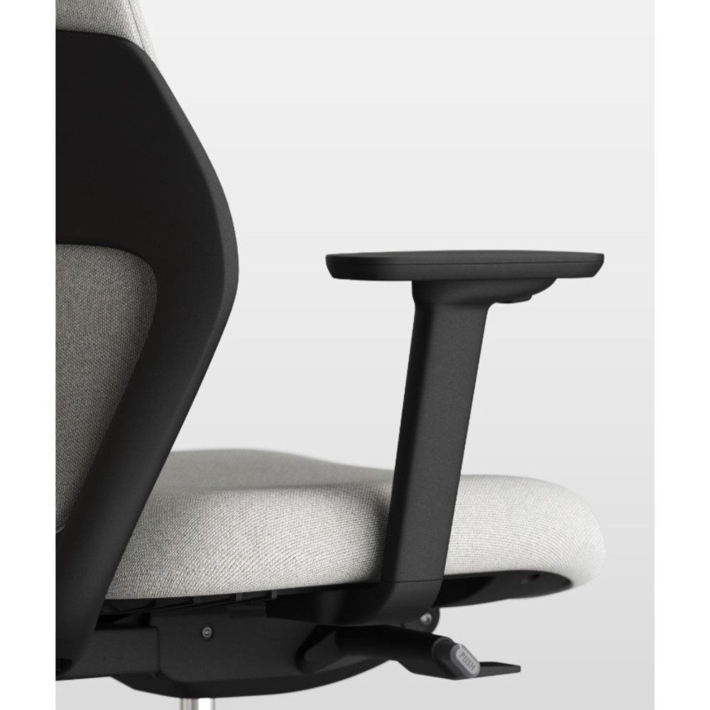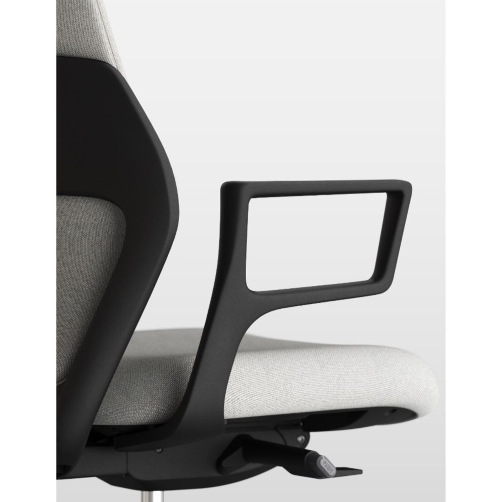 Les accoudoirs sont disponibles avec ou sans rembourrage PU. Leur finition est toujours assortie à celle du cadre pour une esthétique homogène. Les versions réglables apportent une grande liberté de mouvement, notamment pour travailler en mobilité ou pour les espaces de type coworking.