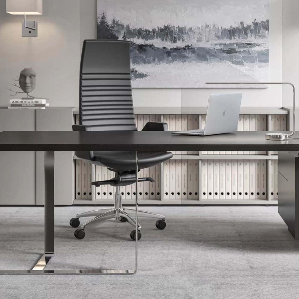 Son dossier de 900 mm épouse la courbe naturelle du dos pour un soutien efficace tout au long de la journée. Sa silhouette continue et ses lignes épurées s’intègrent parfaitement dans un bureau de direction moderne, sobre et élégant.