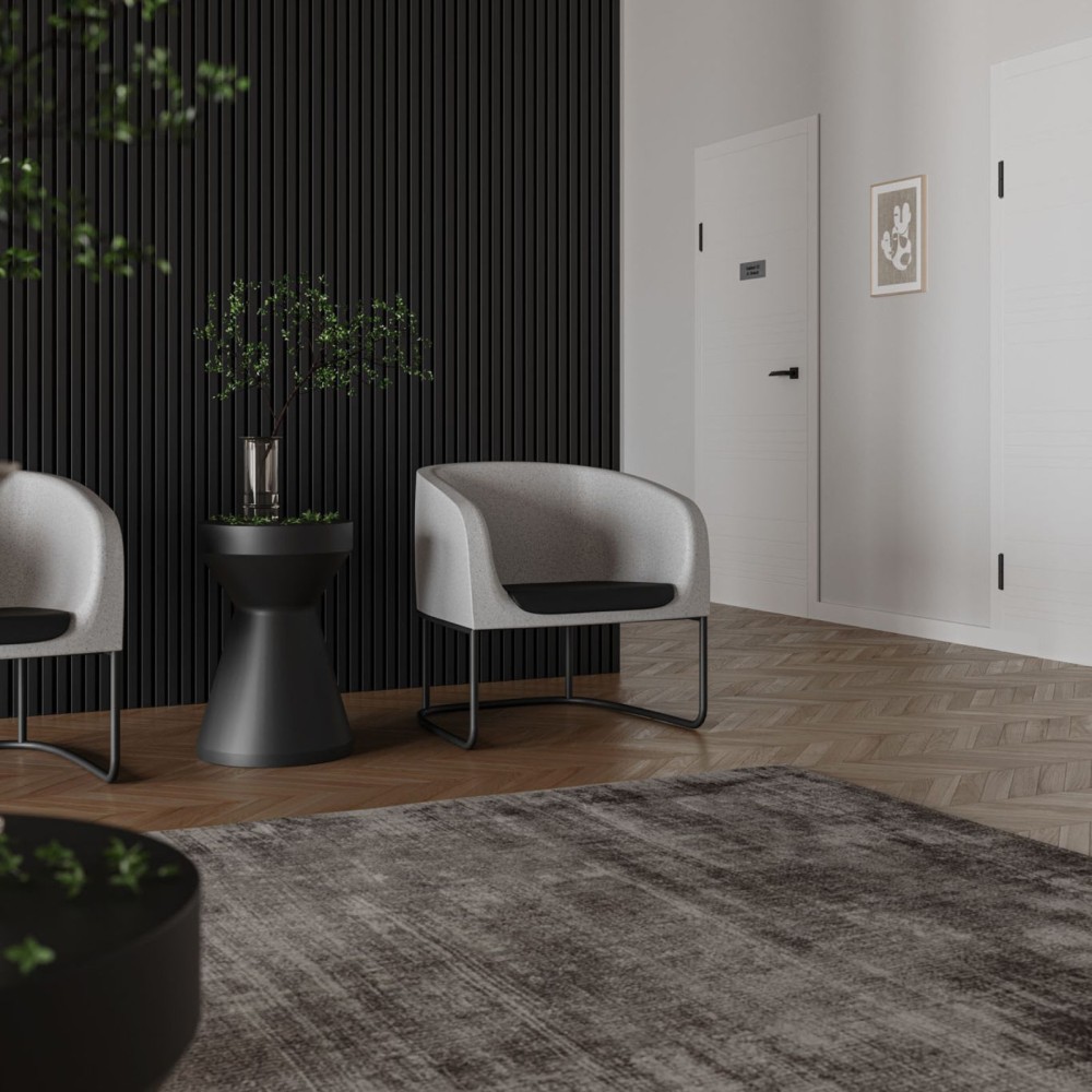 Le piètement en métal fin apporte une touche de légèreté visuelle tout en offrant stabilité et solidité. Grâce à son design épuré, il s’intègre harmonieusement dans les espaces privés comme professionnels, qu’il s’agisse de halls d’hôtel, de salles d’attente ou d’espaces lounge.
