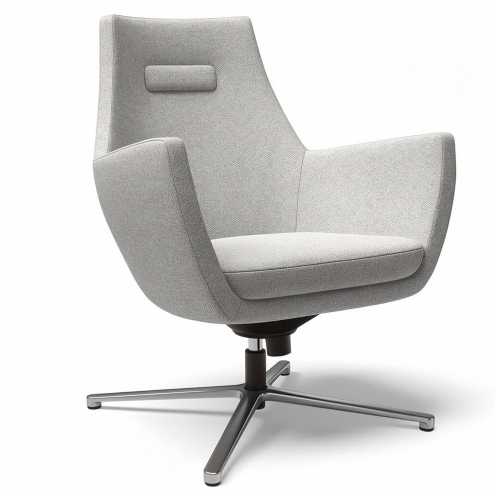 Sa coque basse aux courbes fluides et sa base pivotante à 4 branches apportent légèreté et praticité. L’assise généreuse et le dossier légèrement incliné offrent un soutien confortable pour des moments de relaxation ou de discussion informelle.