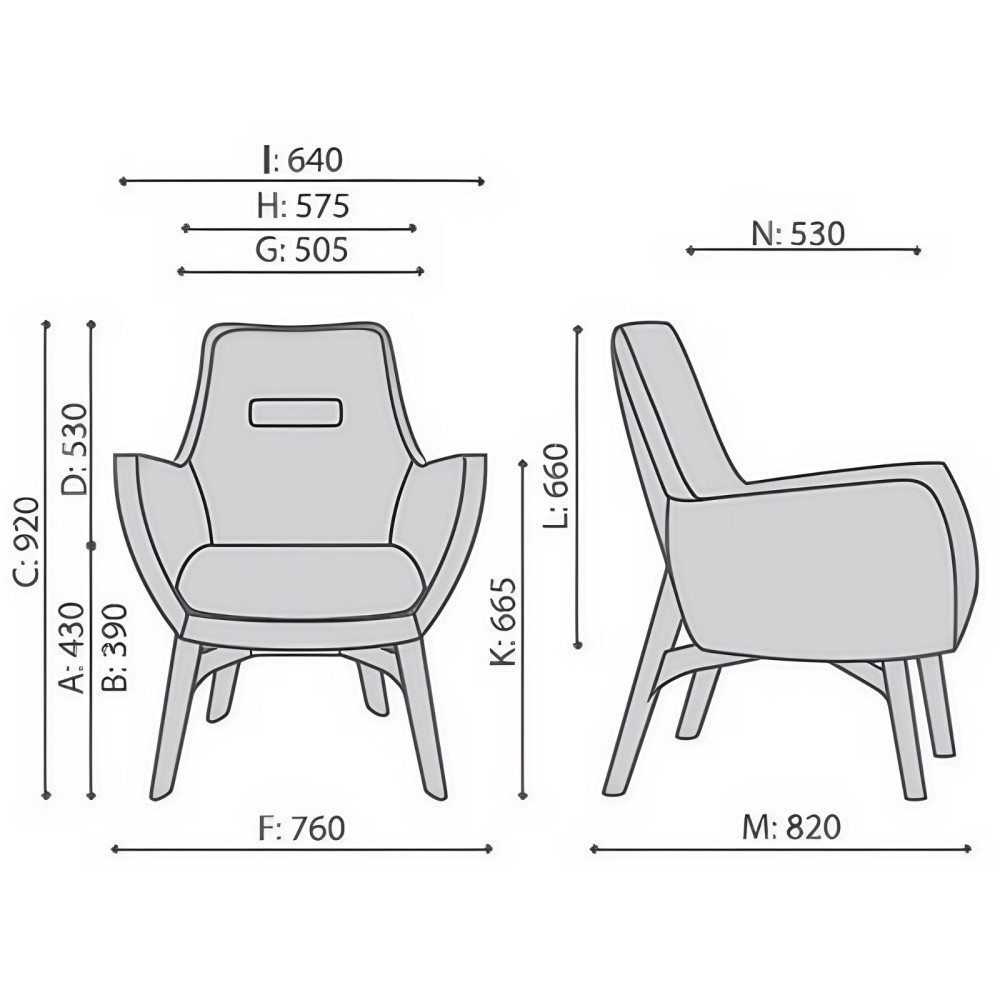 - Hauteur des accoudoirs : 665 mm