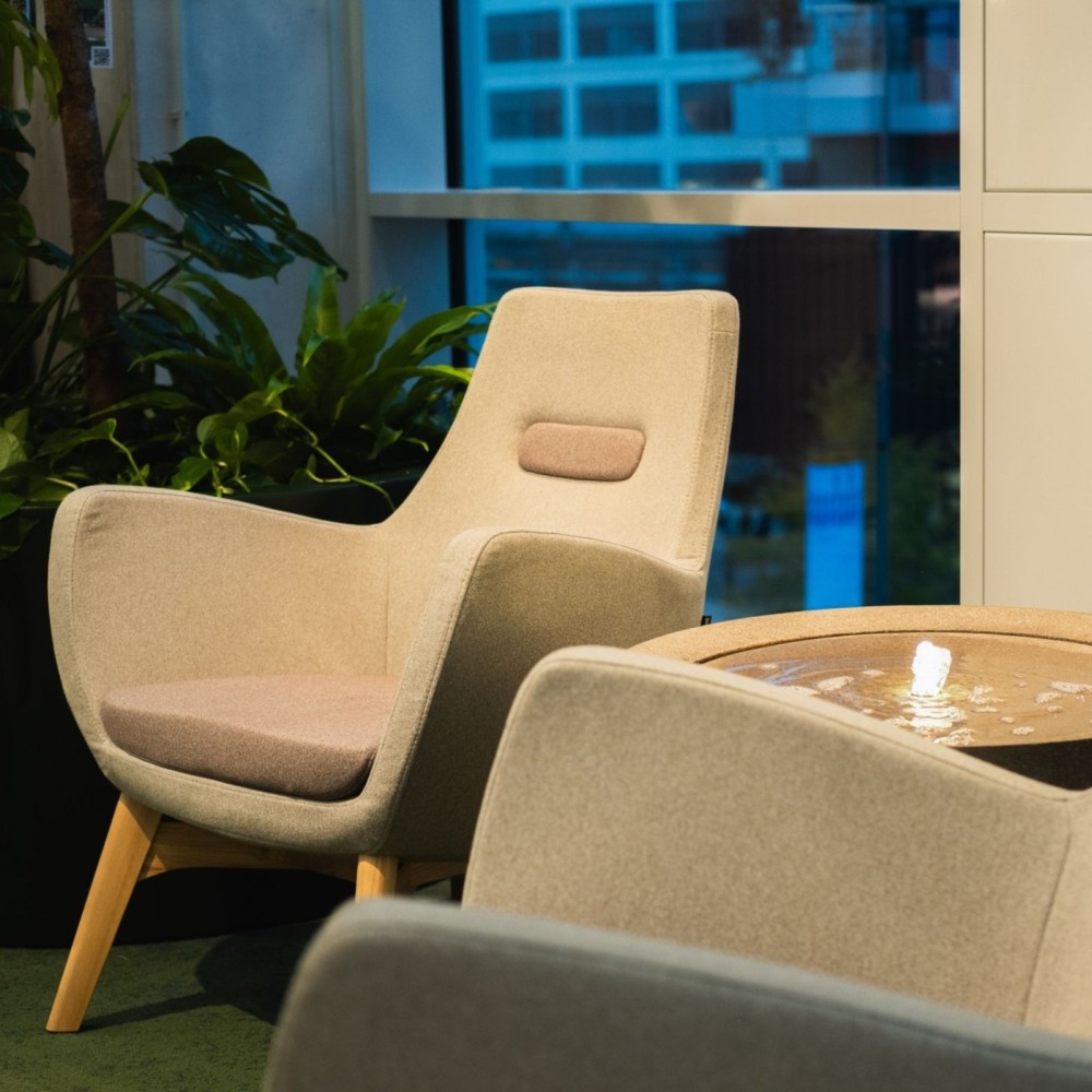 Grâce à ses lignes courbes et ses accoudoirs généreux, le Umm bas offre un soutien confortable tout en conservant une taille réduite. Il s’intègre facilement dans les espaces d’attente, les salons ou les coins lecture.