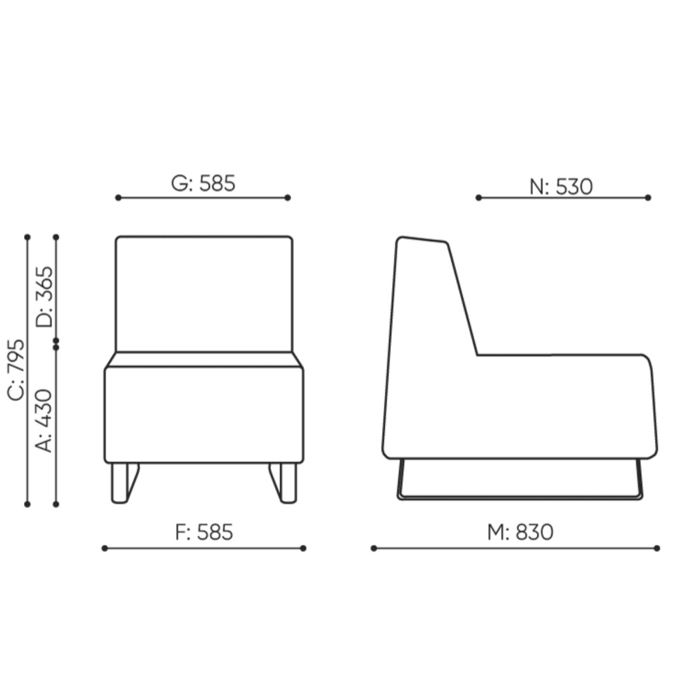 Doté d’une structure interne en bois et métal et d’un rembourrage en mousse haute densité, ce module offre un confort optimal, même lors d’une utilisation prolongée. Sa fabrication solide assure une excellente résistance au temps et à l’usage intensif des espaces collectifs.