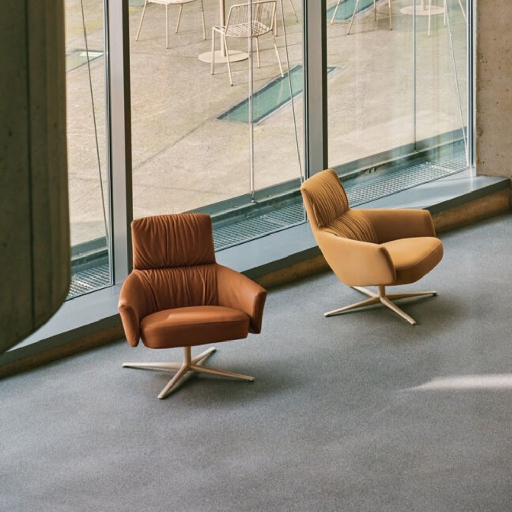 Avec ses formes généreuses et ses accoudoirs intégrés, Toro crée une véritable bulle de confort. La structure soutient efficacement le haut du corps et les épaules, favorisant une assise ergonomique sans compromis sur le style. En option, une têtière enveloppante peut compléter le dossier haut pour renforcer l’isolation acoustique et le bien-être de l’utilisateur.