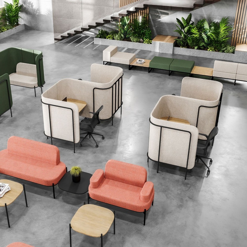 La collection Leaf Pod permet de composer des configurations adaptées aux besoins de ton entreprise : postes individuels, modules communicants, zones de coworking, alcôves de réunion… Tu peux combiner plusieurs POD pour créer un espace complet et harmonieux.