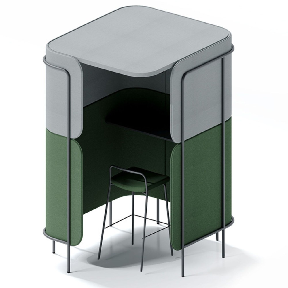 Le poste de travail debout Leaf Pod te permet de disposer d’un espace acoustique compact, pratique et isolé, idéal pour les appels rapides, les sessions de travail debout ou les tâches à courte durée. Avec son toit intégré et ses parois hautes, il crée une véritable cabine acoustique ouverte, parfaite pour les open spaces.