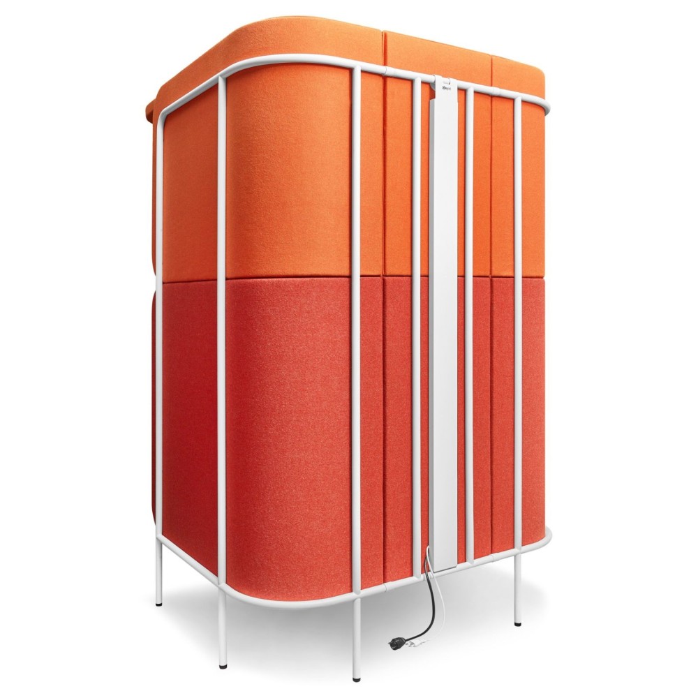 Les parois acoustiques absorbent efficacement les bruits du bureau, permettant de t’isoler lors d’appels, visioconférences ou moments nécessitant une courte concentration. Le toit vient renforcer cette isolation et créer une sensation d’intimité sans fermer complètement l’espace.