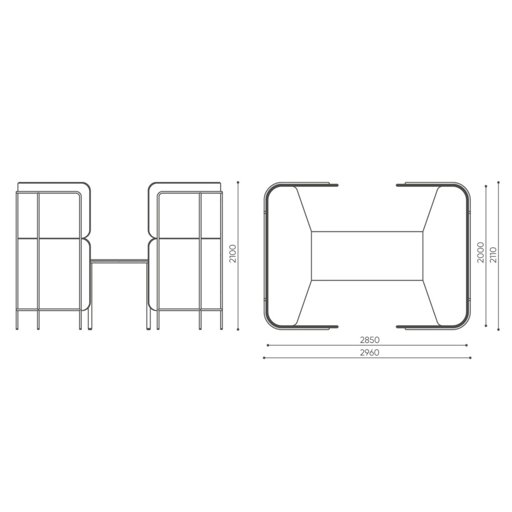 Cette version 6 places intègre deux alcôves latérales avec assises hautes ou tabourets, reliées par une grande table centrale. Elle permet d’accueillir jusqu’à six personnes pour des réunions, des brainstormings ou des pauses collaboratives.