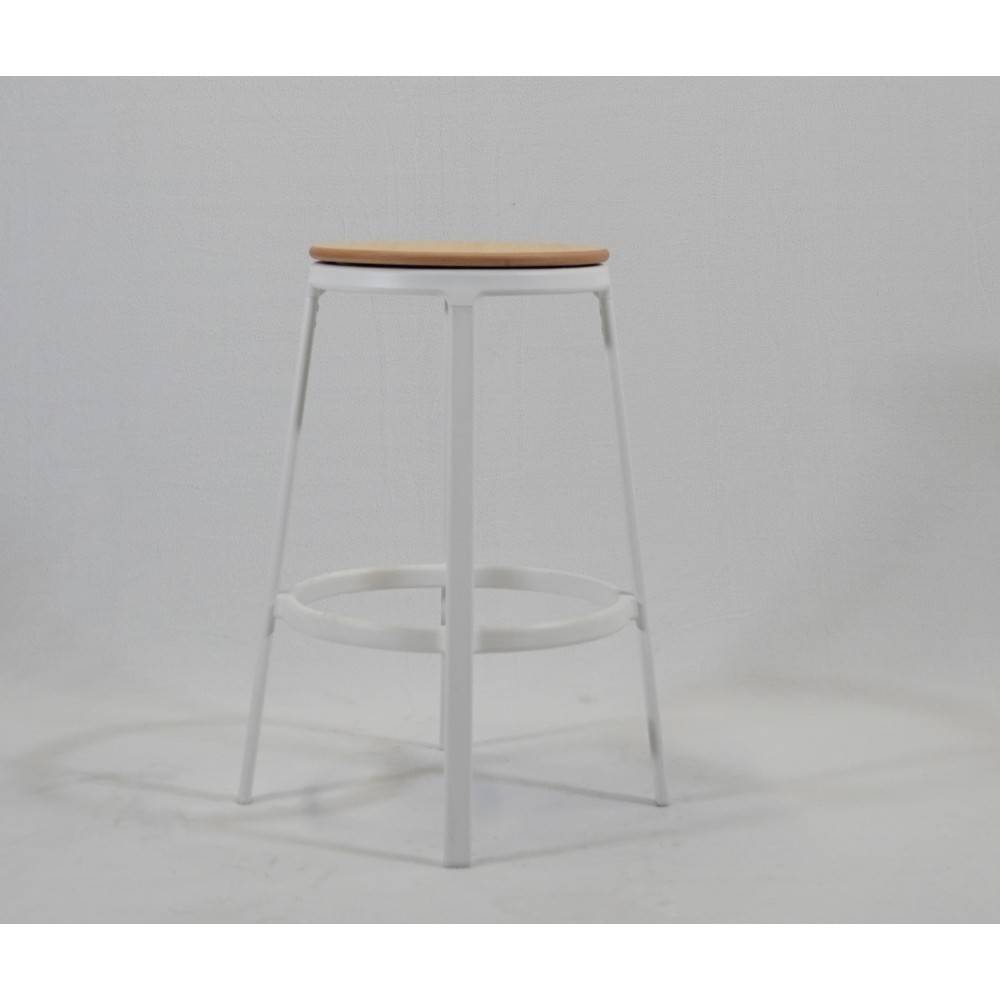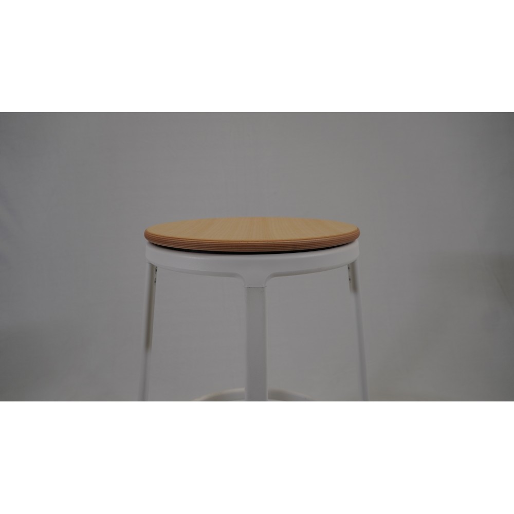Tabouret en acier peint et assise en bois de frêne