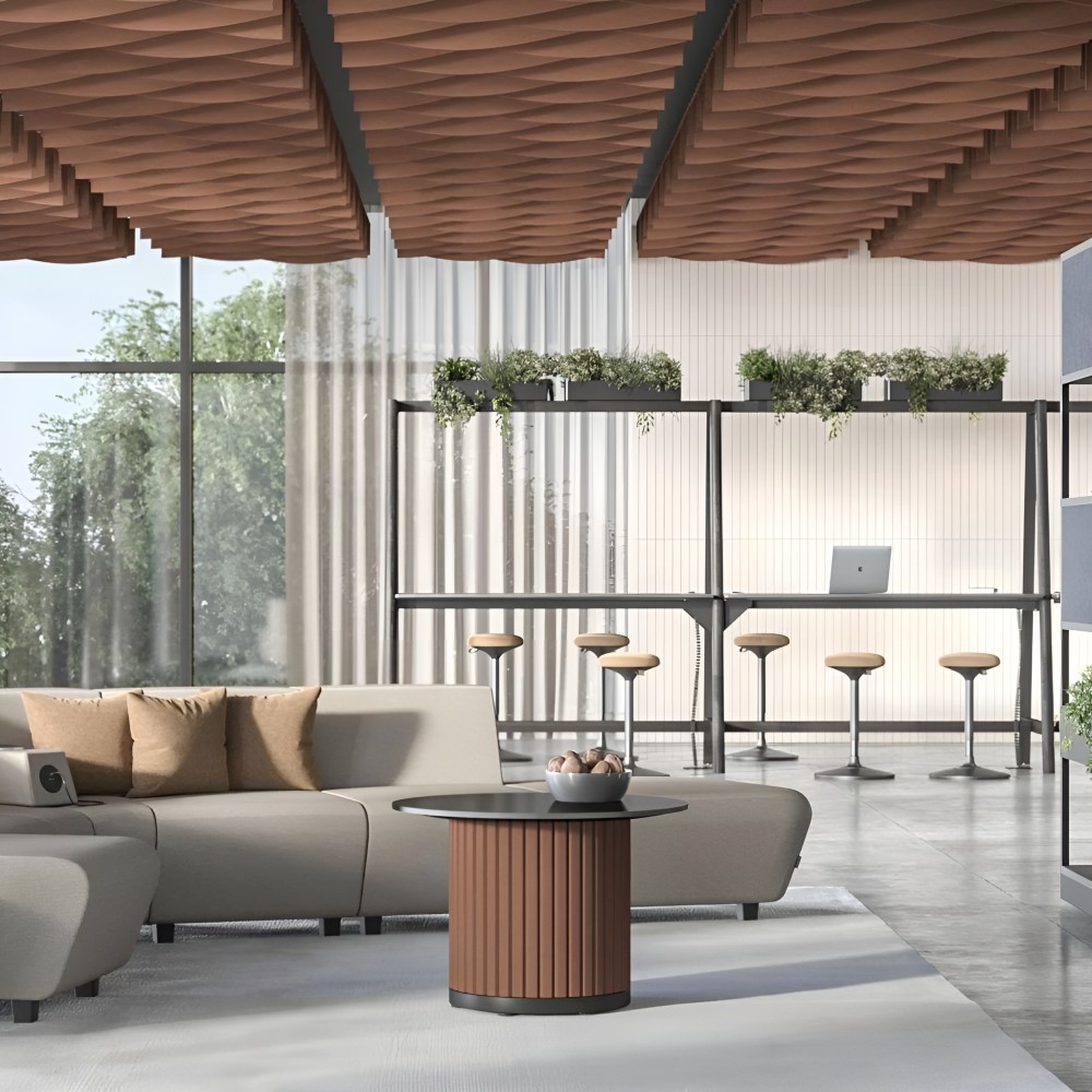 Les baffles acoustiques en feutre PET suspendus au plafond sont une solution idéale pour réduire les nuisances sonores dans les bureaux, salles de réunion ou espaces de coworking. Leur structure verticale permet une absorption acoustique maximale sans compromettre la lumière ni la circulation de l’air.