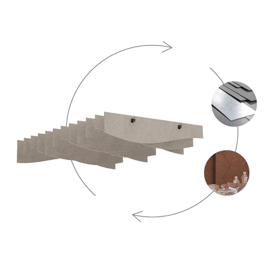 Fabriqués à partir de matériaux recyclés et recyclables, les baffles acoustiques en feutre PET combinent performance acoustique, respect de l’environnement et esthétisme. Leur structure alvéolée absorbe efficacement les sons de moyenne et haute fréquence.