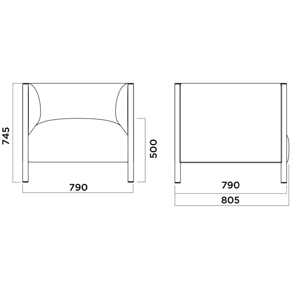 • Dimensions : L 805 mm x P 790 mm x H 745 mm – Hauteur d’assise : 500 mm