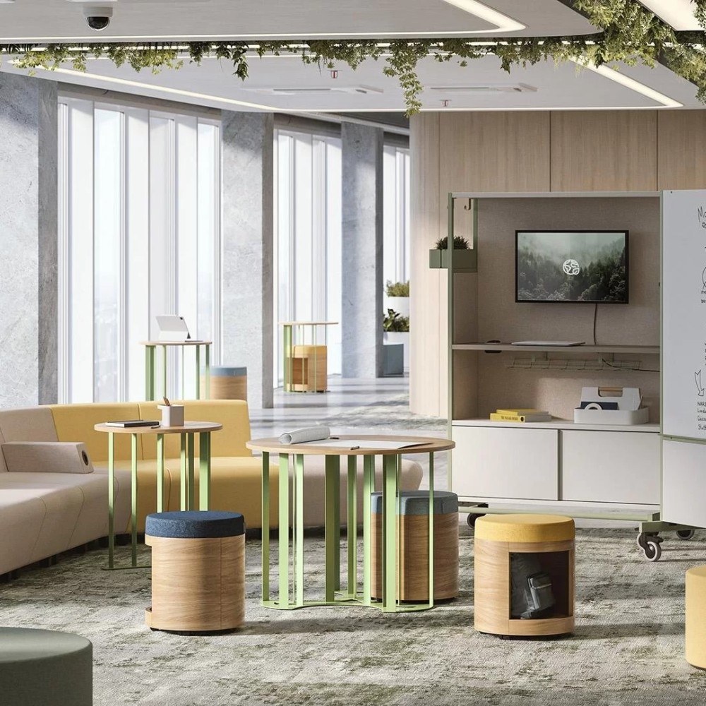 La table ZooZoo est conçue pour s'associer parfaitement avec les poufs de la même collection, qui peuvent se glisser dessous pour optimiser l’espace. Grâce à un large choix de finitions, elle s’adapte à tous les intérieurs : espaces de coworking, halls d’accueil, salles de créativité ou lounge professionnels.