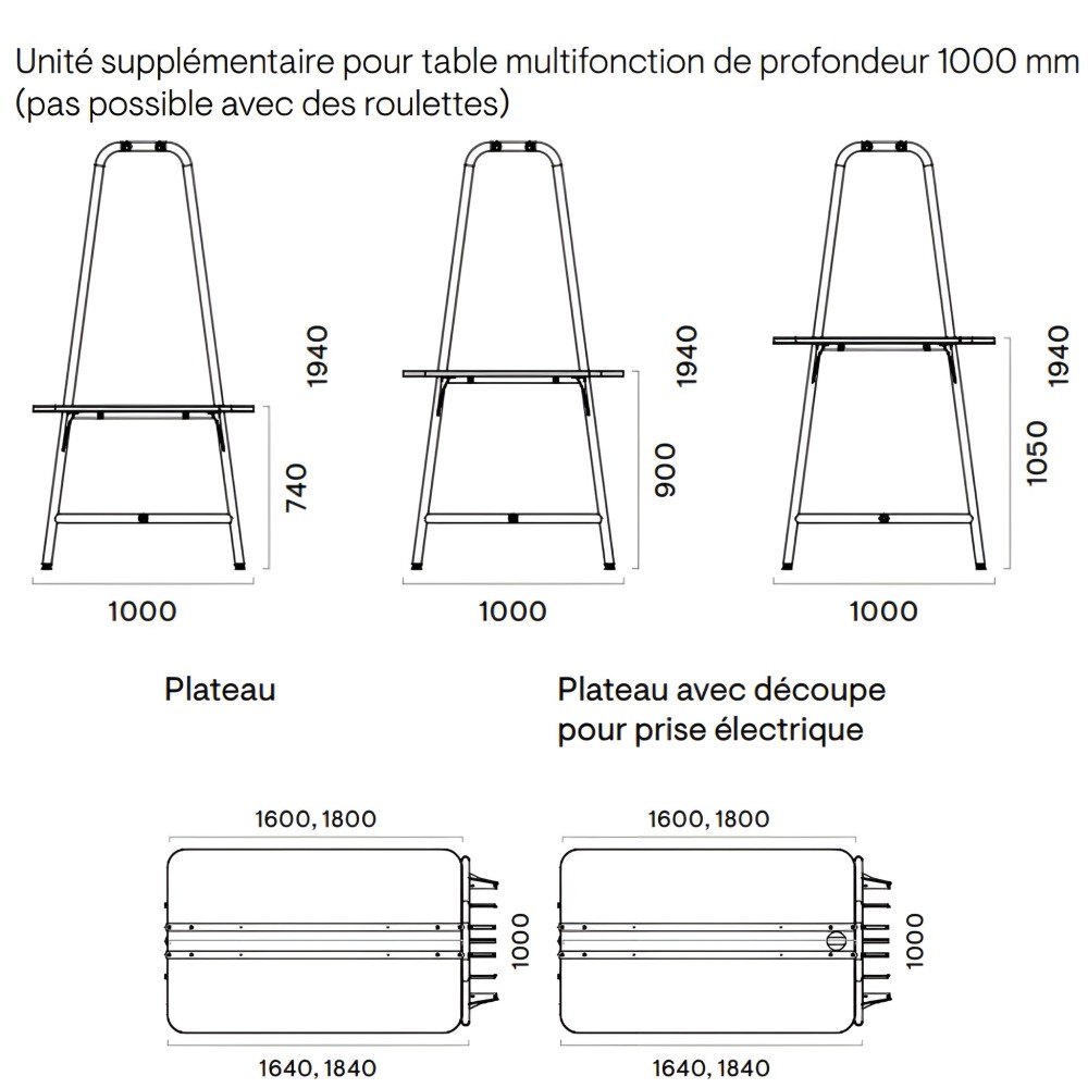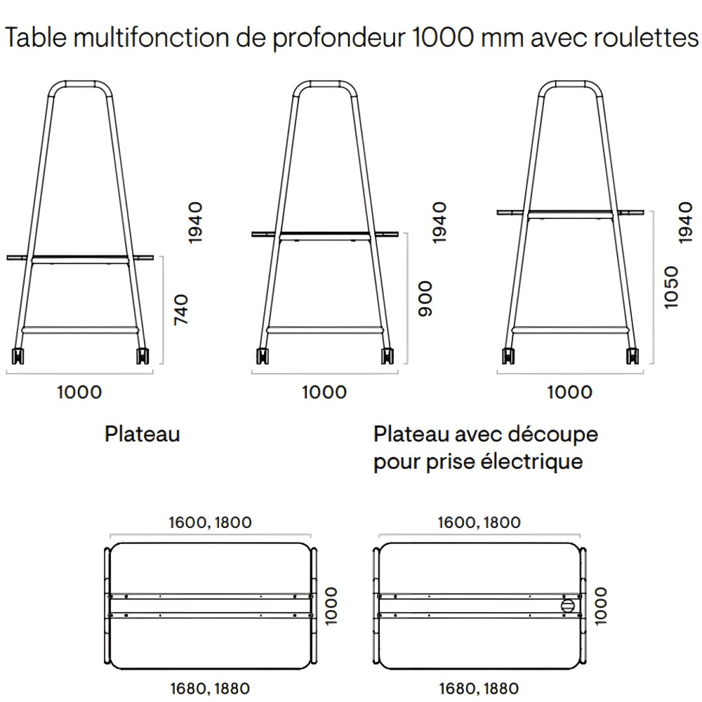 - Roulettes (Ø100 mm) – idéales pour les environnements dynamiques