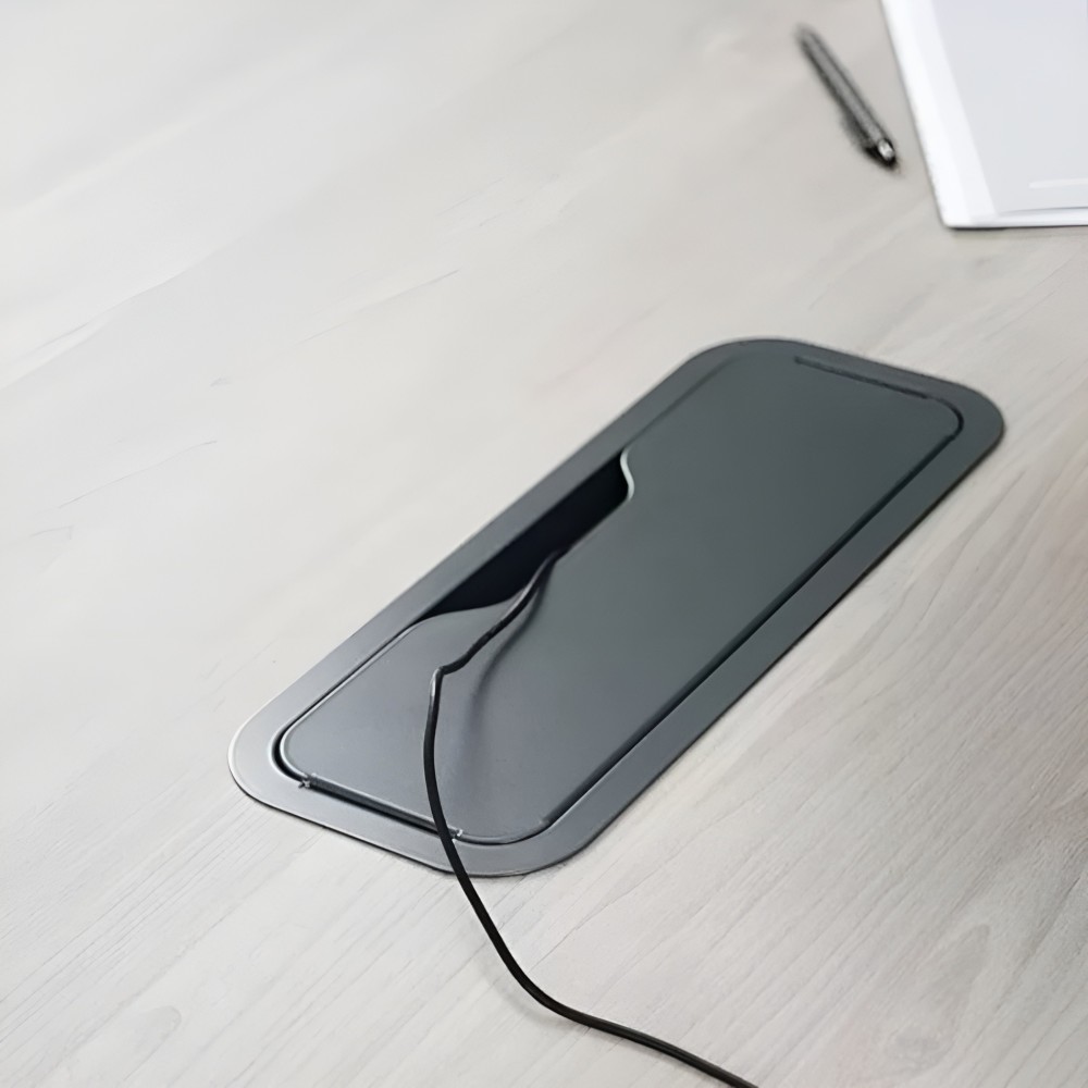 - Passe-câbles, goulottes et blocs de prises AC + ports USB A & C