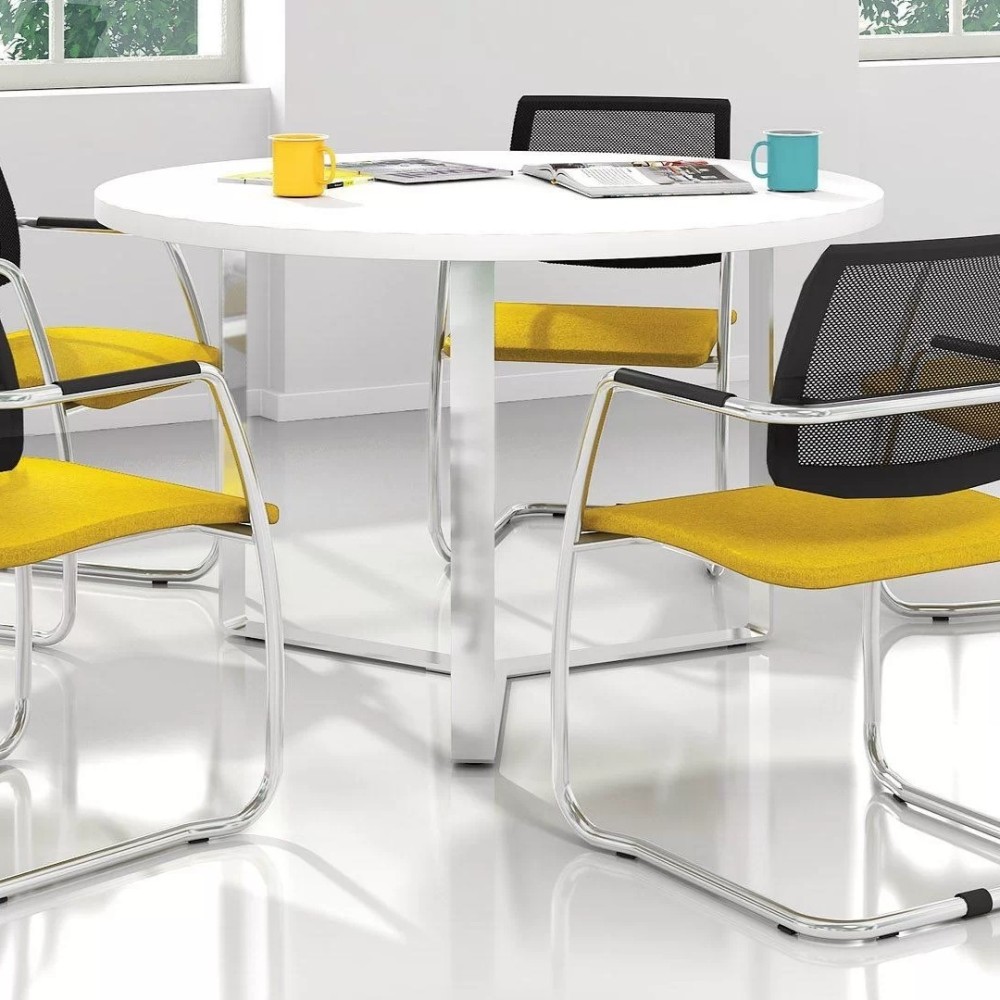 Avec son diamètre de 120 cm, cette table ronde permet des réunions conviviales, des échanges confidentiels ou un espace d’attente élégant.