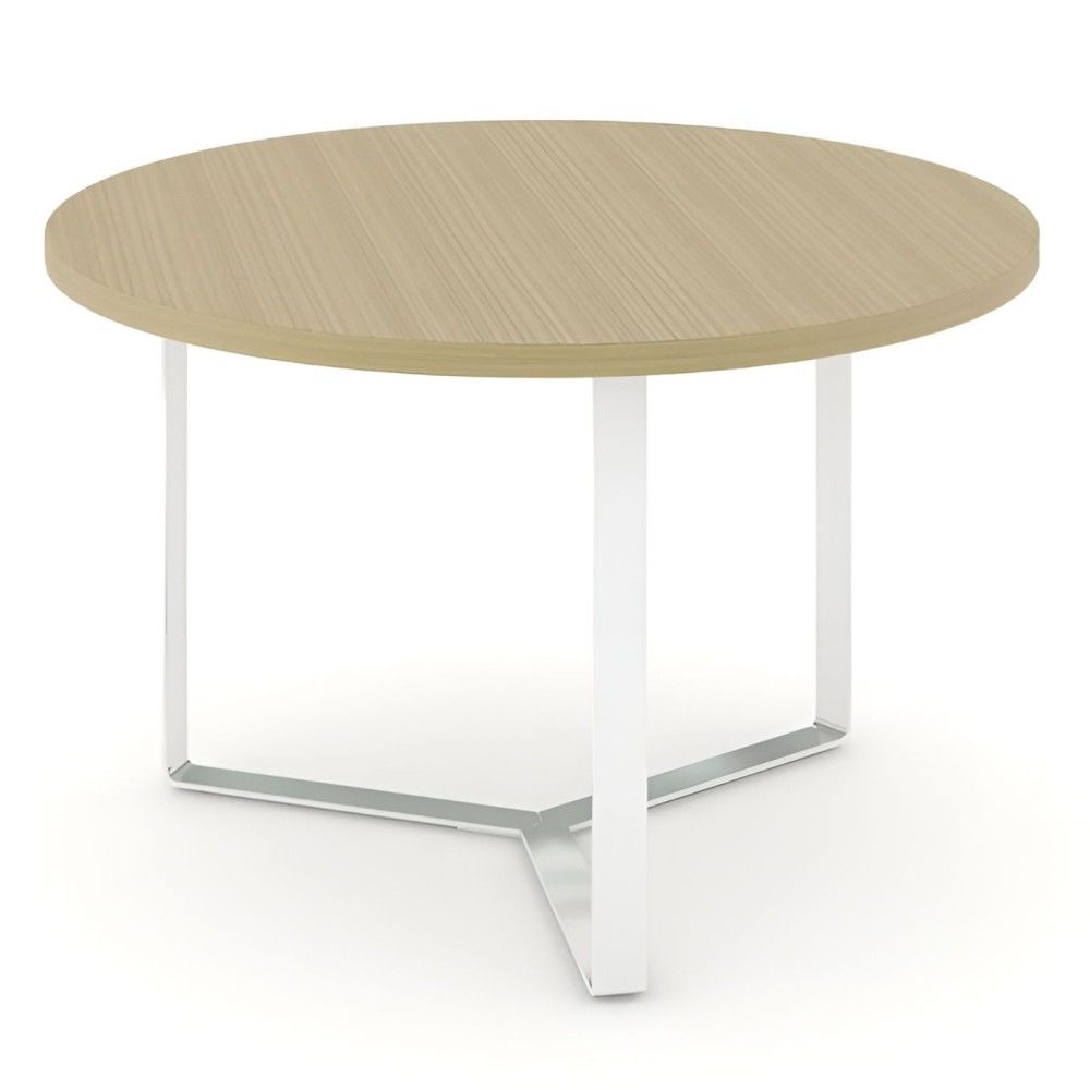La table de réunion PLANA en version ronde est idéale pour les espaces de direction, les zones d’accueil ou les petites salles de réunion. Son design épuré allie un plateau en bois clair chaleureux à un piètement moderne en acier plié blanc.