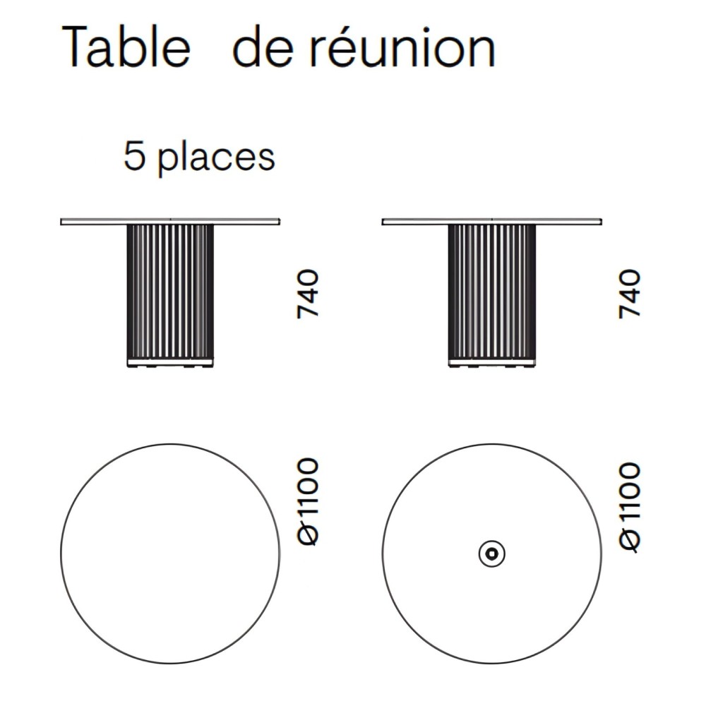 Avec son diamètre de 110 cm, la table permet d’accueillir jusqu’à 5 personnes confortablement, sans compromettre la circulation ou la visibilité. Son format compact reste idéal pour les petites et moyennes salles.