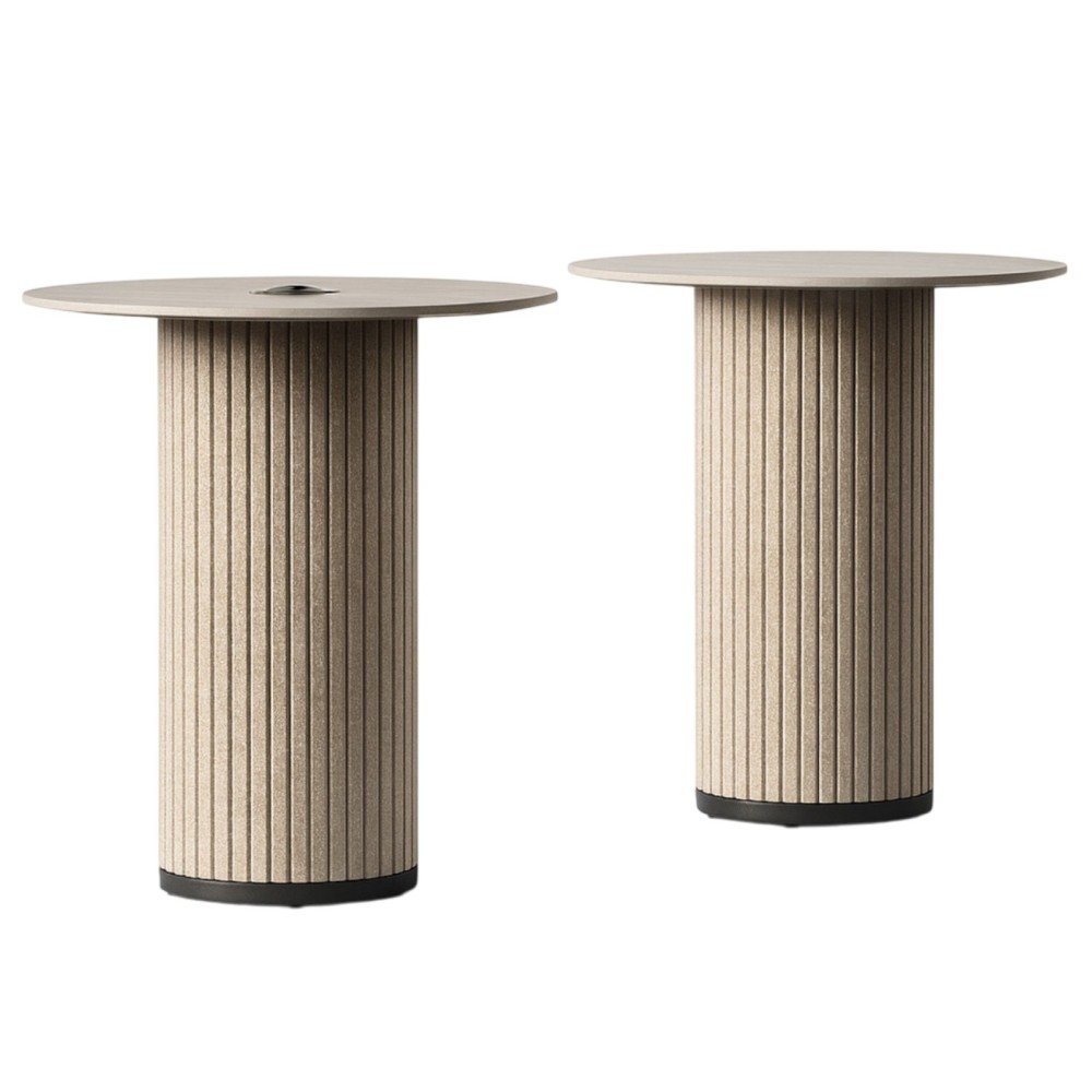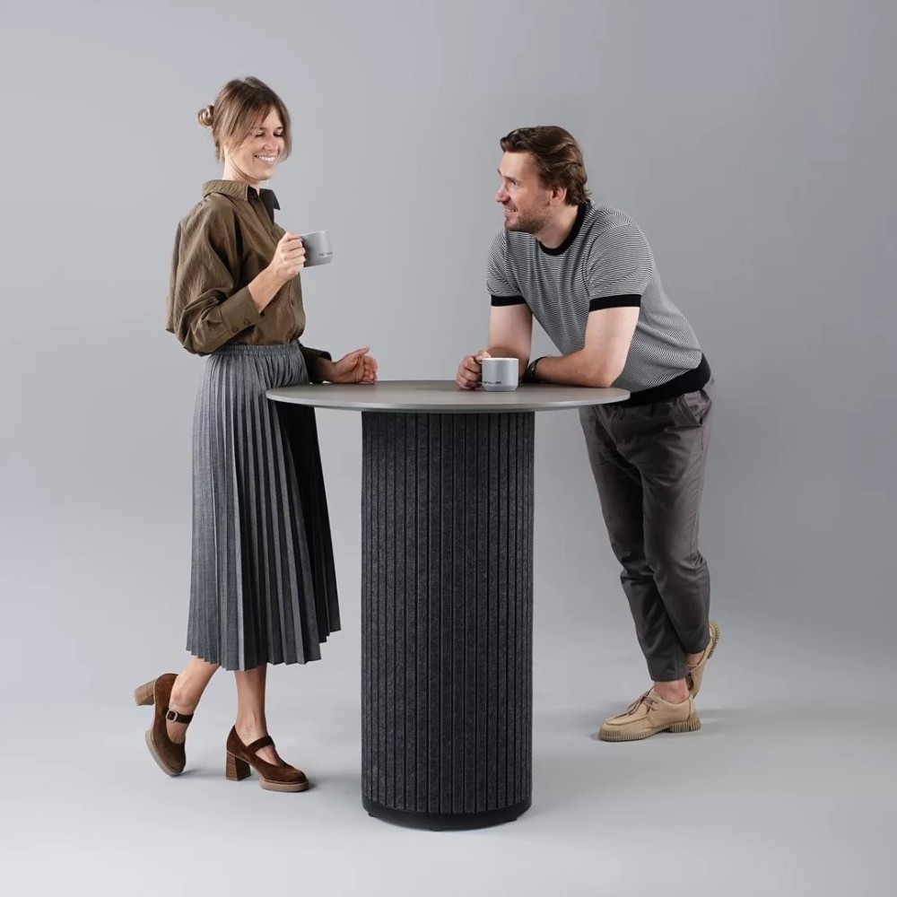 La table PARTHOS haute incarne l’harmonie parfaite entre design contemporain et fonctionnalité. Avec son plateau rond de 900 mm de diamètre et sa colonne centrale gainée de feutre PET, elle est idéale pour les espaces collaboratifs, zones de créativité ou réunions informelles en position debout ou avec tabourets hauts.